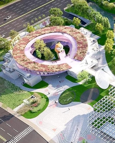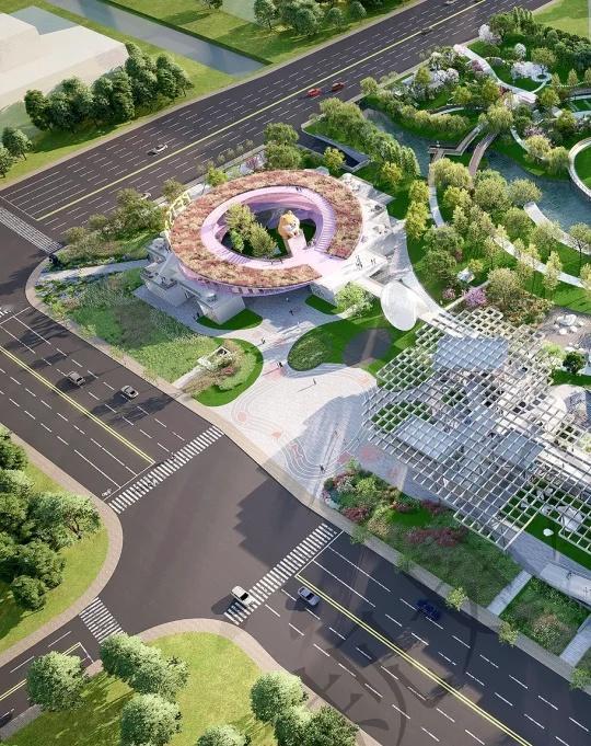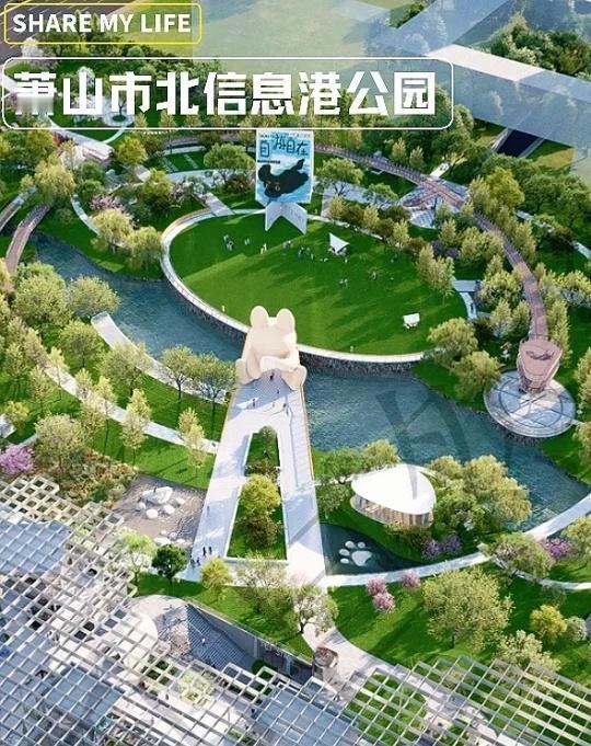 萧山市北新地标‼️信息港公园迎来大升级! · ✅近日,杭州信息港明星路地下停车场改造项目方案公示,引发广泛关注。这个看似普通的停车场改造项目,实则展现了当代城市更新中“地下空间高效利用”与“地面环境品质提升”的完美结合。 · ✅地下停车场设计 项目总用地面积为39041平方米,总建筑面积达32,796平方米,其中地下建筑面积就占28,113平方米。这表明项目主体是对地下停车场的重大改扩建。 · ✅建筑设计:公园西岸新增了游憩建筑与服务管理建筑,总地上建筑面积4,683平方米。建筑整体2层高,采用“北侧围合式+南侧散点式”的布局,并通过连廊串联成一个有机整体,既保证了功能分区,又创造了丰富的空间体验。 · ✅景观设计:从效果图展示的“猫爪图案广场”和整体景观风格推断,公园很可能定位为猫咪主题,打造为一个全新的宠物友好主题公园。 公园改造了中心区域原有的硬质广场,规划了开阔的多功能大草坪,绿化面积大幅增加,可满足露营、市集、户外活动等多种需求。除此以外,原设计的红色飘带空中栈道被简化。 · ✅ 信息港公园及地下停车场改造项目,将功能性基础设施(停车场)与生活性公共空间(主题公园)有机结合,实现土地复合高效利用。项目建成后,将为周边企业和居民提供全方位服务,极大提升区域生活品质和城市形象。 记录我的城市 景观改造设计 城市规划建设 杭州公园 公园设计 景观设计 萧山市北 萧山 信息港