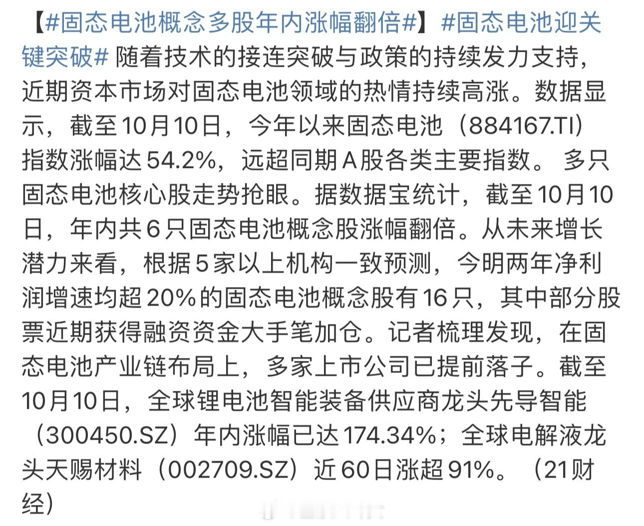 固态电池概念多股年内涨幅翻倍固态电池迎关键突破[并不简单]