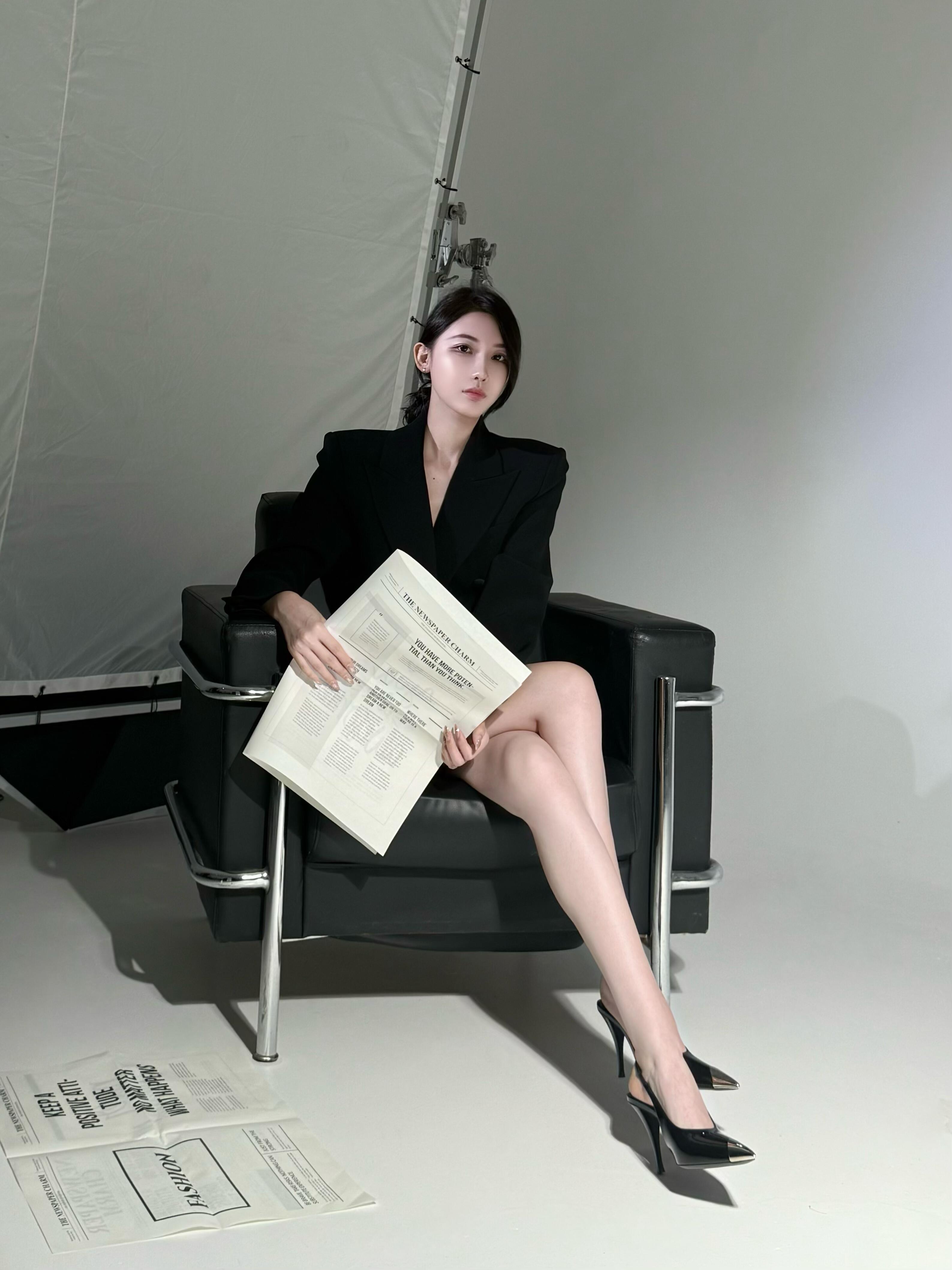 Angelababy(杨颖)身穿LeFame 2025秋冬高定黑白千鸟格套裙,头