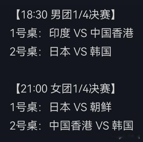 亚锦赛男团签位也太绝了吧,中日韩传统强队全在上半区。更绝的是1/4决赛就让日本和韩国对上了。知道的会为日韩叹息,认为流年不利运气不佳,咋就与中国队分在一个半区了呢?不知道的会不会认为这是中国人队做的局啊?哈哈哈,这话说得好像国乒怕日韩似的,就是兵来将挡水来土掩的事。不过这签位倒是利好下半区的外协,运气好的薅个亚军也是个不错的结局。10月12日,18:30分男团1/4决赛: 日本vs韩国,谁会一轮游?拭目以待!