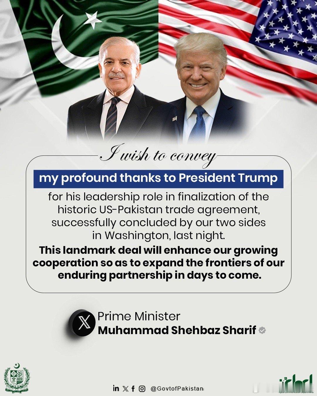7月,美巴🇵🇰贸易协议顺利完成,关税19%(远低于印度🇮🇳的50%)