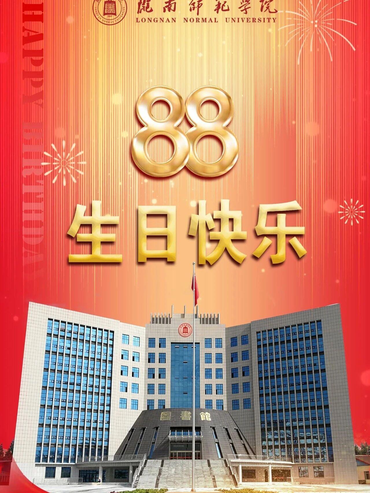88岁,生日快乐! 岁月峥嵘 四时流转 今天 陇南师范学院 迎来了自己的第88个生日 八十八载 风雨兼程 征途漫漫 八十八载 笃行不怠 薪火赓续 坚守教育初心 勇担育人使命 无问西东 逐梦前行 站在88岁的新起点上 陇南师范学院 风华正茂 征程再启 让我们共同祝愿 亲爱的陇南师范学院 生日快乐