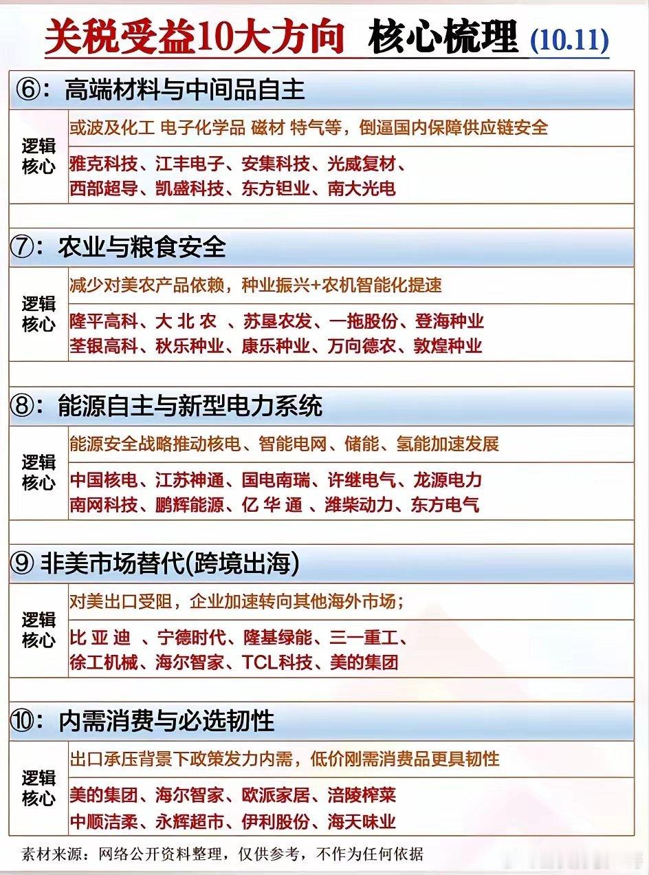 内需拉动型行业中,农业及农产品加工、汽车及零部件产业链、科技与半导体、化工与材料等板块都因关税战迎来机遇,不少企业有望提升市场份额和竞争力。