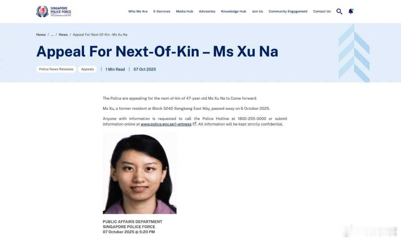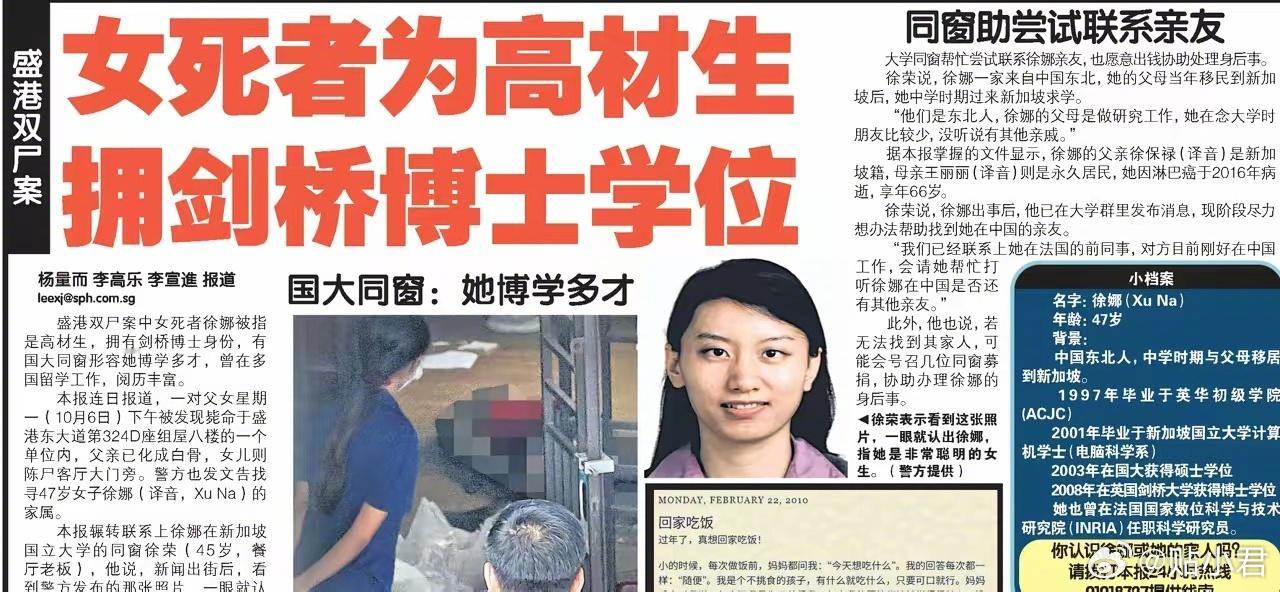 据悉,徐娜多年前随家人从中国东北来到新加坡,后取得永久居民身份。邻居表示,他们几乎没见过亲友上门探访。