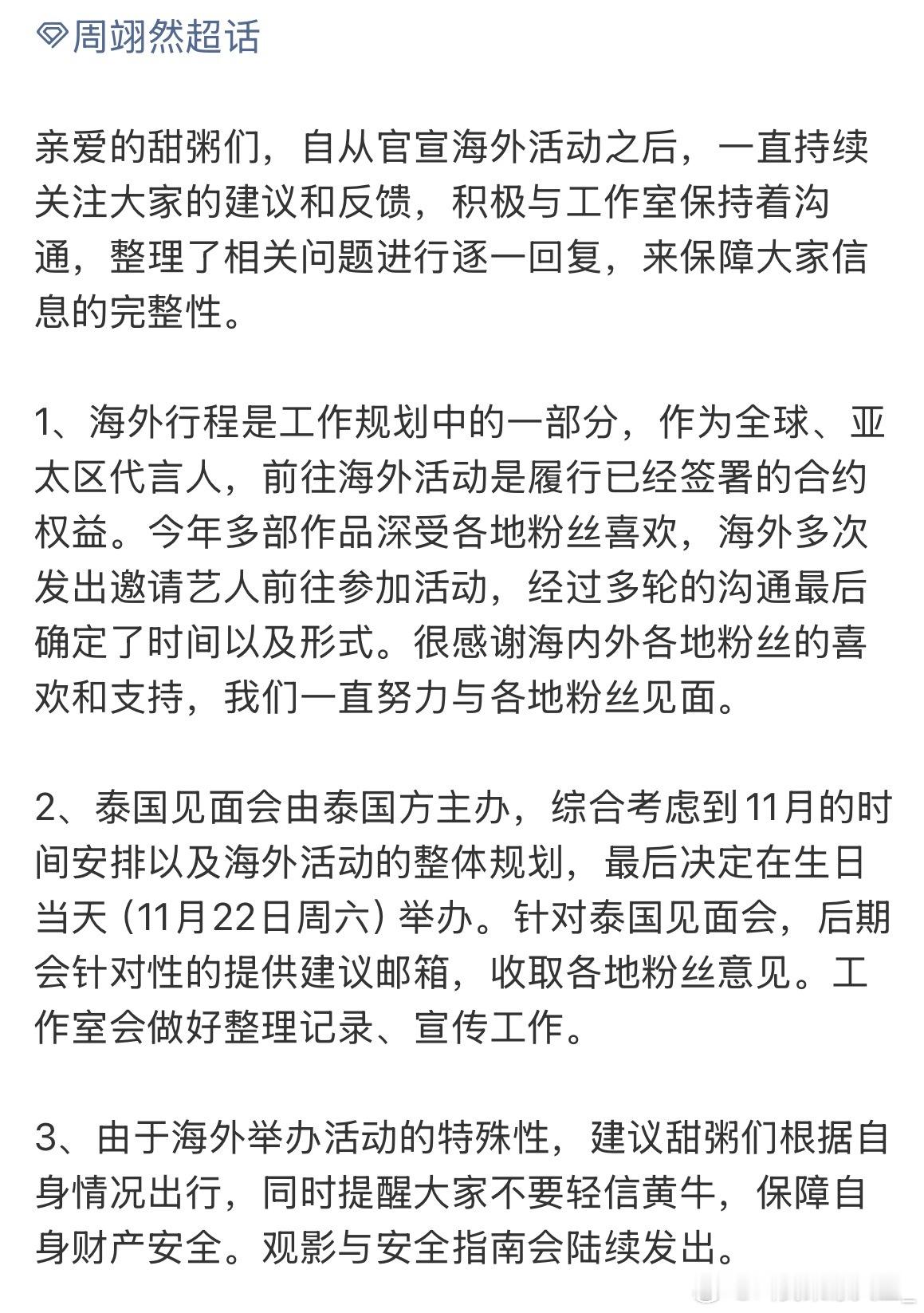 周翊然方回应粉丝会,表示海外行程只是工作规划的一部分周翊然方回应粉丝会