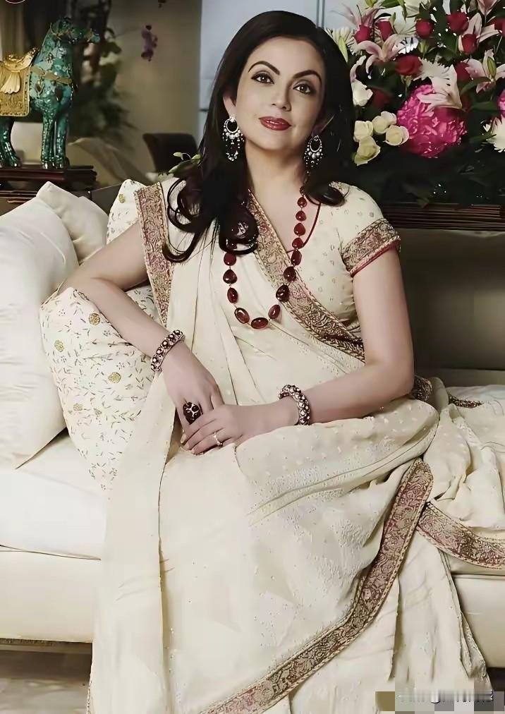 印度顶级富豪女人的穿着打扮,展示了什么叫珠光宝气,什么叫荣华富贵,虽然对珠宝不是很懂,但是看她佩戴的这些珠宝,感觉不像是寻常之物,无论是耳朵上佩戴的耳坠,还是脖子上挂的项链,还是手上戴的手镯和戒指,任意拿出一件,价值都应该不菲,普通人可望而不可及,再看她穿的这件衣服,设计的也是简洁大方,但布料绝对是好布料,应该都是极品丝绸的,看着就非常的有档次,有钱人的穿着的确是不一样!