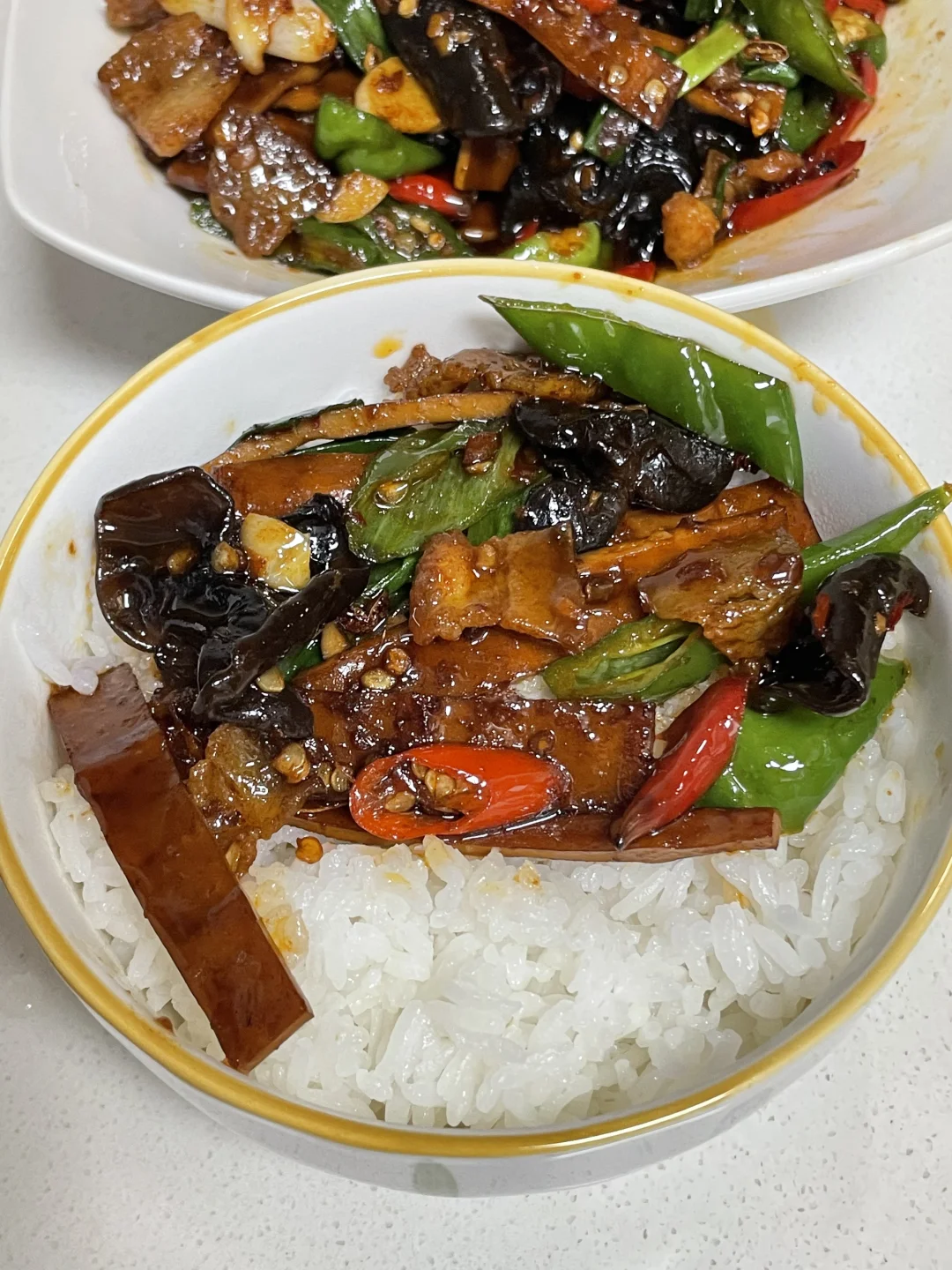 姐妹们,今天给大家出一个好吃的家常菜——五花肉炒香干。这样做出来五花肉不腥而且巨香,再加上香干和木耳,青椒与糟辣椒的融合,真的是巨下饭,喜欢的姐妹可以尝试着做一下。