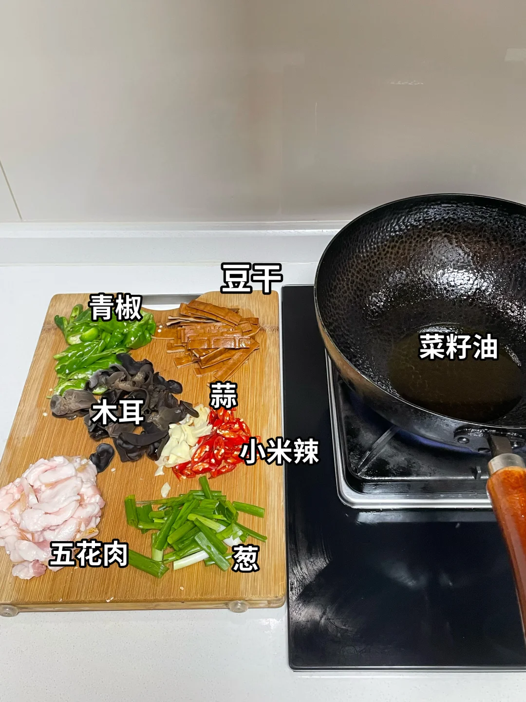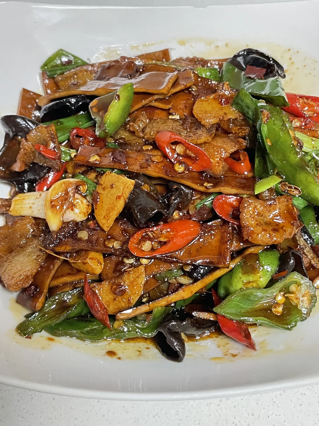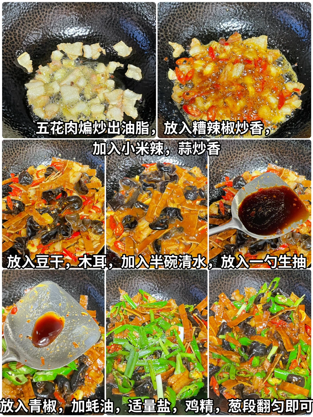 🌶️食材:牛皮豆干,青椒,木耳,五花肉