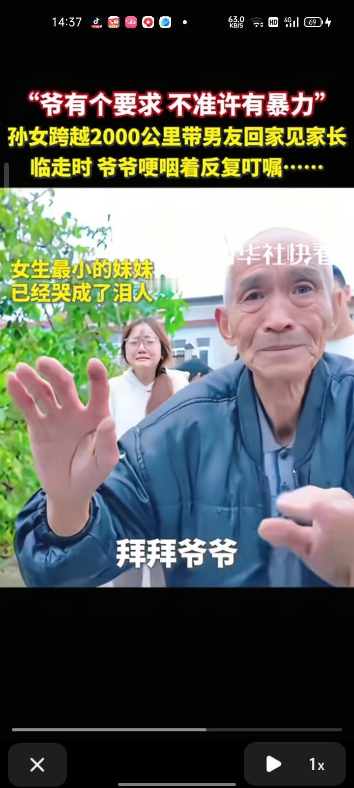 10月9日,安阳林州市。这个国庆,女生带男友回家见家长,临走时爷爷反复叮嘱“不允许用暴力”,女生最小的妹妹哭成了泪人,看得出他们有多么不舍。爷爷那句“不允许用暴力”哪里是要求 这分明是老人盼孙女一生安稳的真心。
