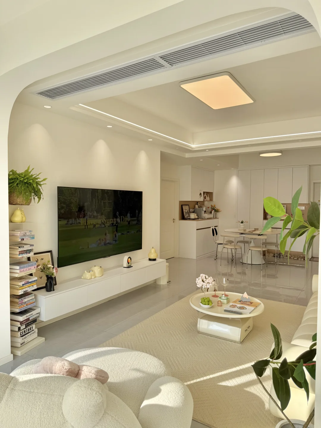 ◽双眼皮吊顶+弧形拱门,简单造型不积灰