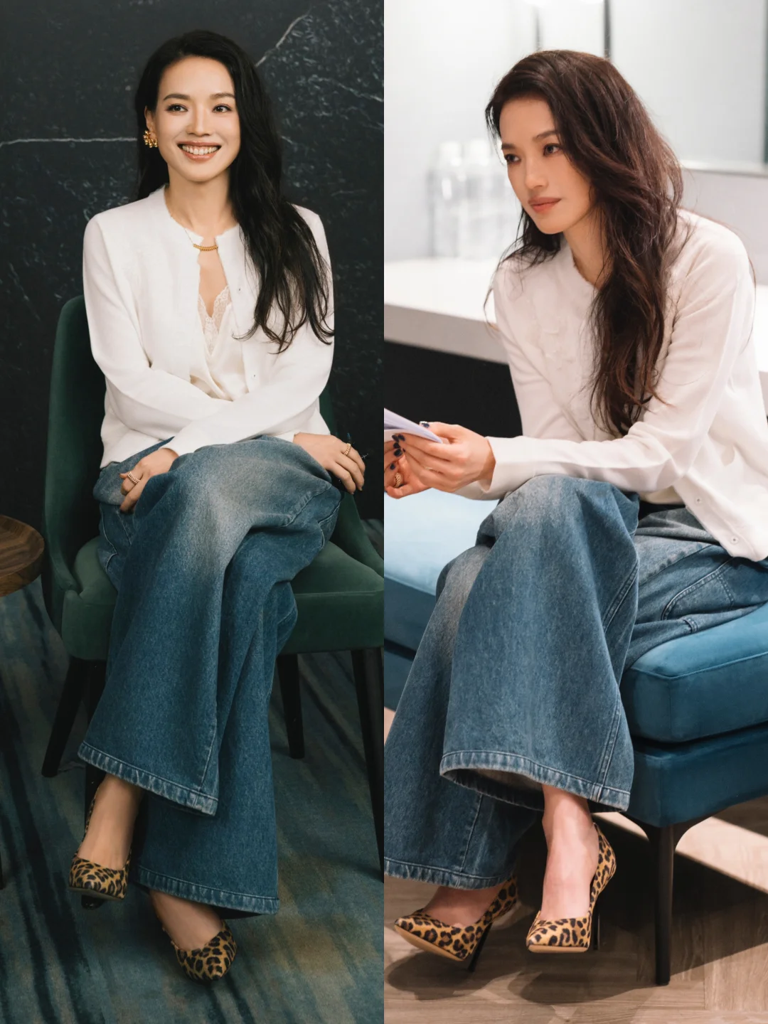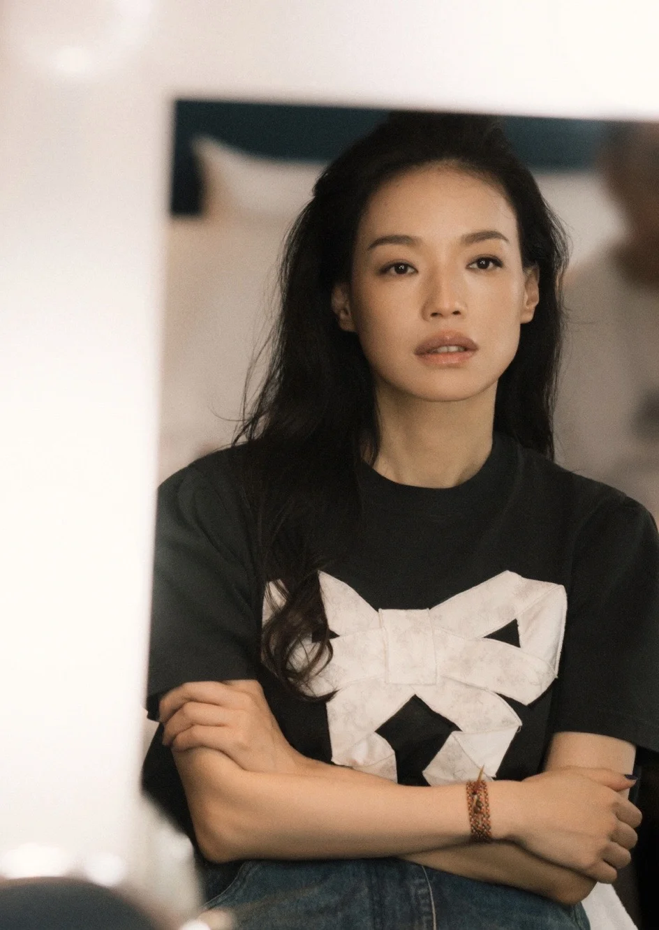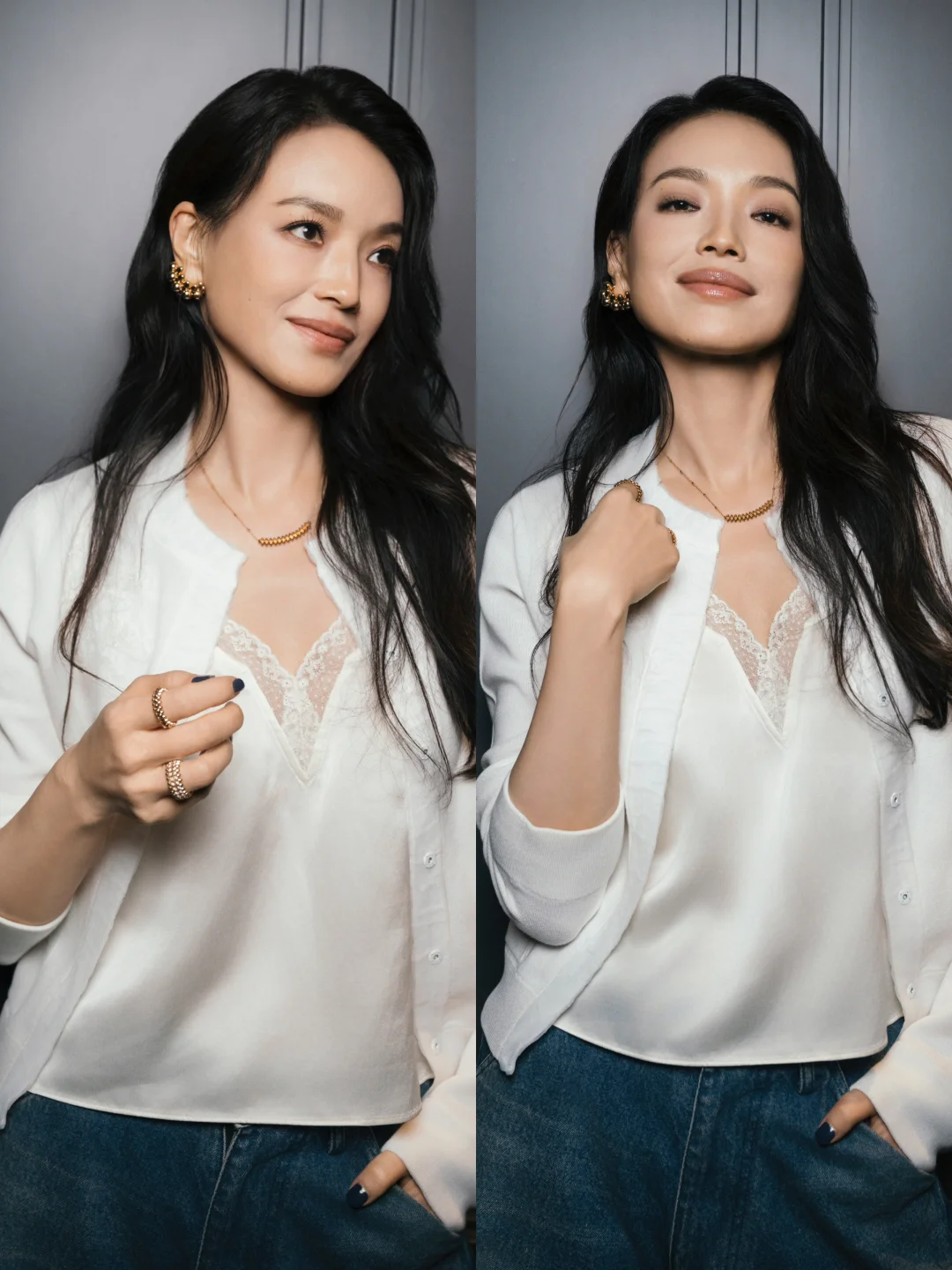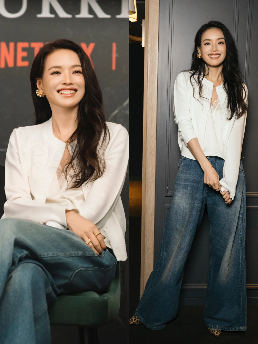 舒淇卷发白衣亮相新片首映,明媚松弛的大花
