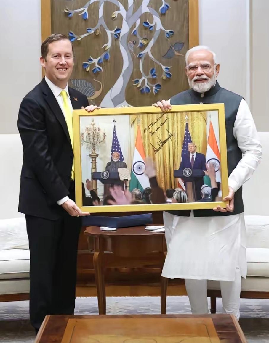 呦呵!又哥俩好了?喏!老特一个签名照,让莫迪心里美极了 MrPrimeMin