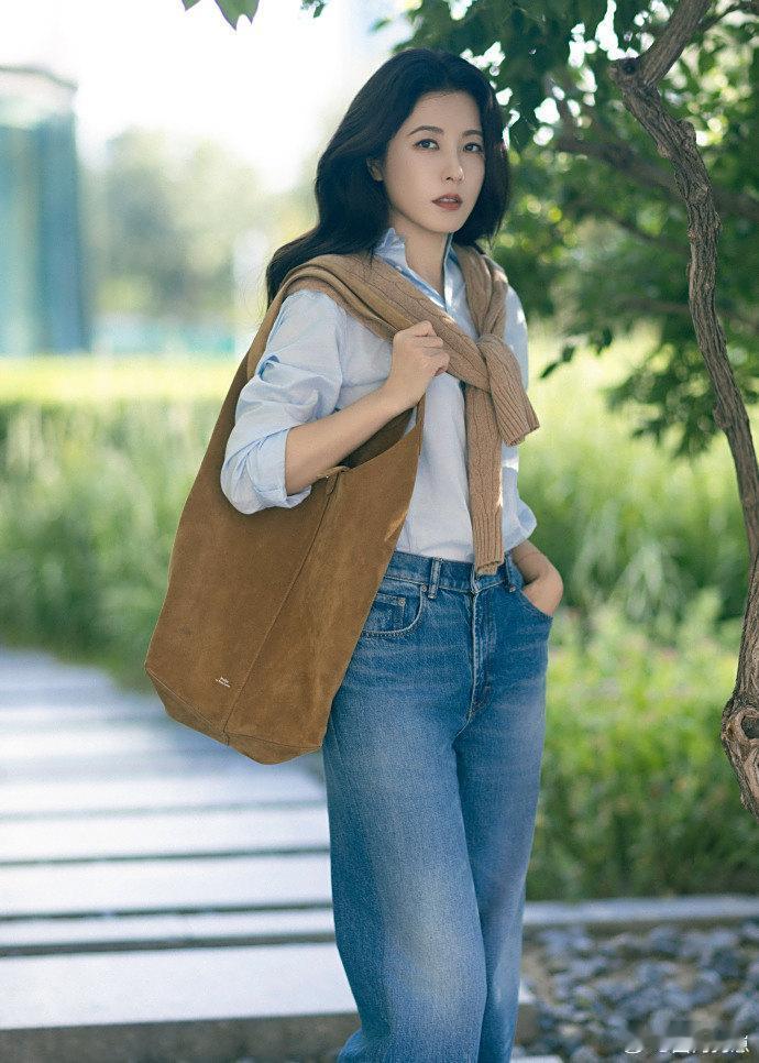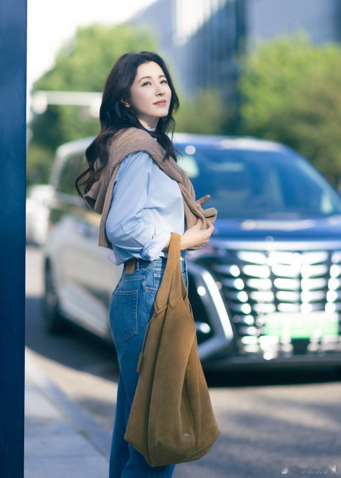 又被曾黎的造型惊艳到!蓝衬衫搭配牛仔裤,简约穿搭却穿出时髦感,减龄又高级,气质太绝了~