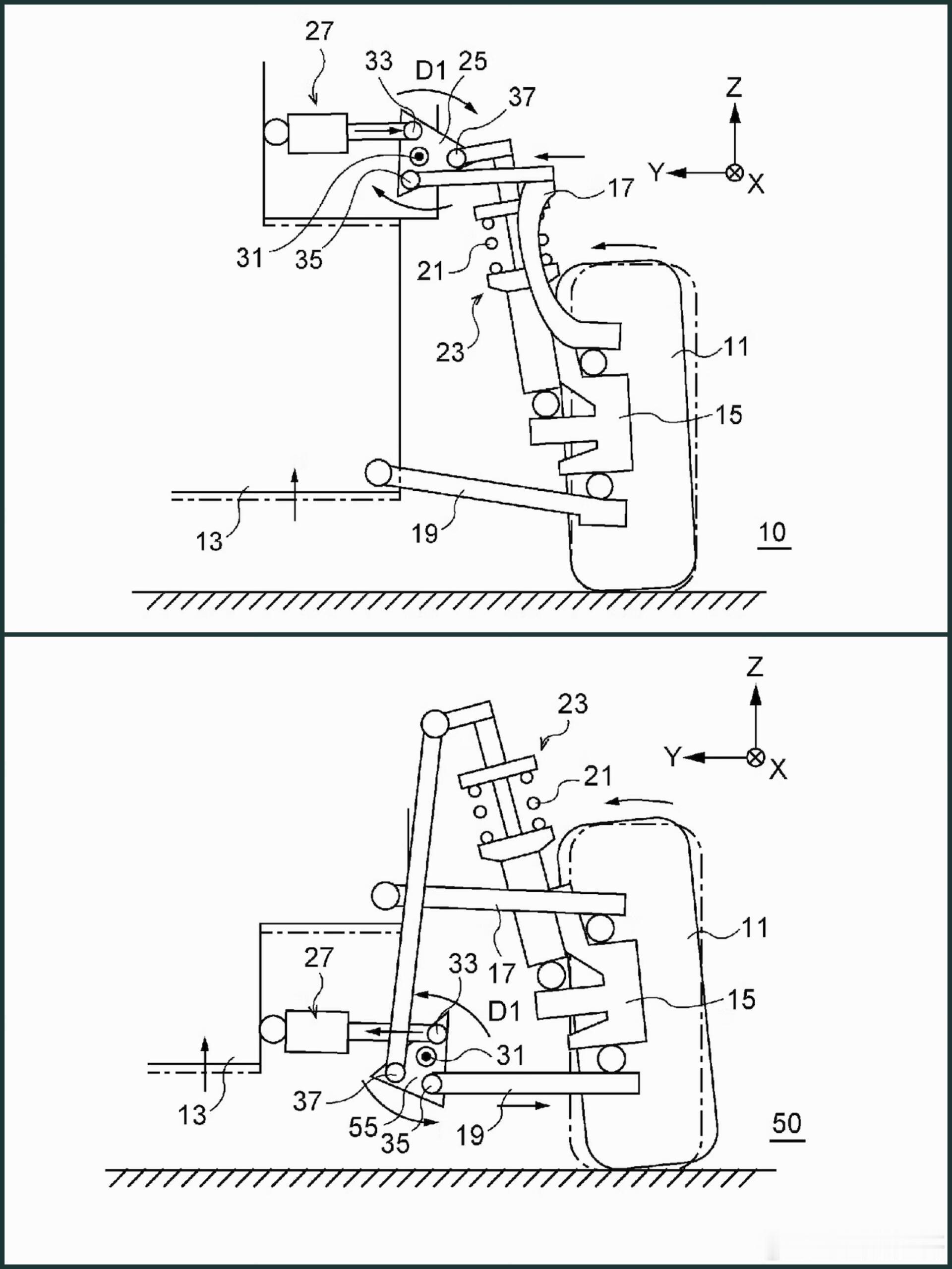 近日,据世界知识产权组织(WIPO)公开文件显示,斯巴鲁汽车公司申请了一项名为“悬架装置和车辆”的颠覆性技术专利。该专利的核心是一种允许车辆在行驶过程中,实时、主动地调整车身高度与车轮外倾角(Camber)的悬架系统,其目标是让极致的低趴姿态与卓越的赛道操控这两种看似矛盾的需求,在同一辆车上得以共存。