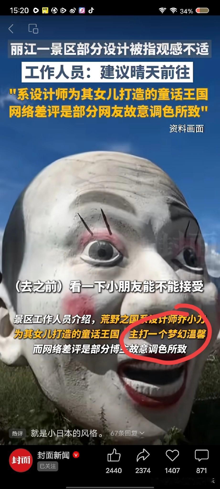 我的天啊! 你敢相信, 这是一位父亲乔小刀为女儿打造设计的童话王国!还说主打梦幻温馨! 起因是云南丽江荒野之国被网友指出画风诡异,观感不好,工作人员却说建议晴天前往,网络差评也是网友故意调色才会这样! 但是其实即使是晴天去,观感也不会好到哪里吧! 有没有去过这个地方游玩的游客啊? 这真的好玩吗? 大家怎么看?