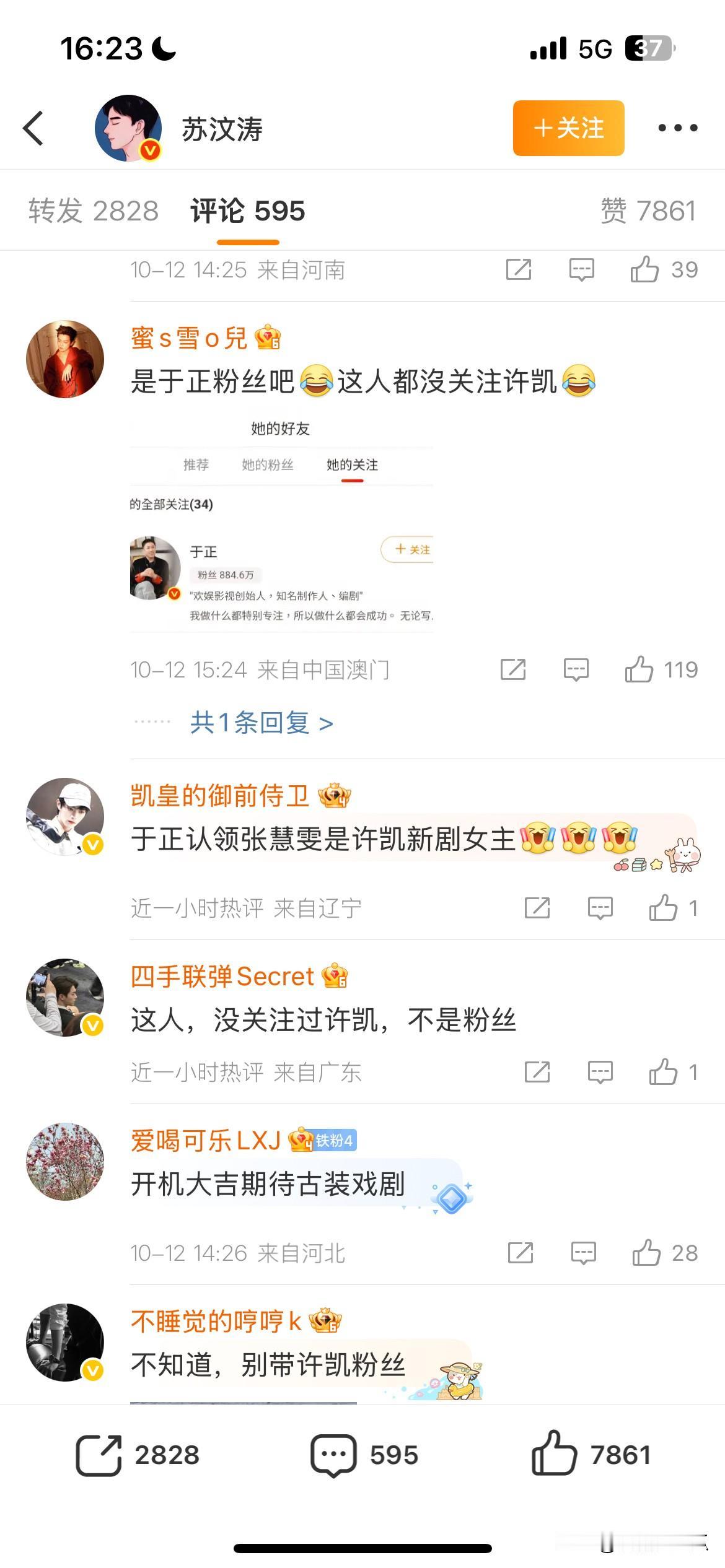 于正没想到 许凯也没想到 于正认领张慧雯,这本是老板给许凯剧宣了,没想到的是许凯粉丝说,问于正的那个人,根本都没有关注许凯,只关注了于正是于正粉丝。 许凯新剧能开机,不都得感谢老板于正吗,现在于正这是好人没好报,之前被许凯私底下蛐蛐就算了,现在还被许凯粉丝这么嫌弃,老板难做呀,有没有那么一刻他又想起来白月光。