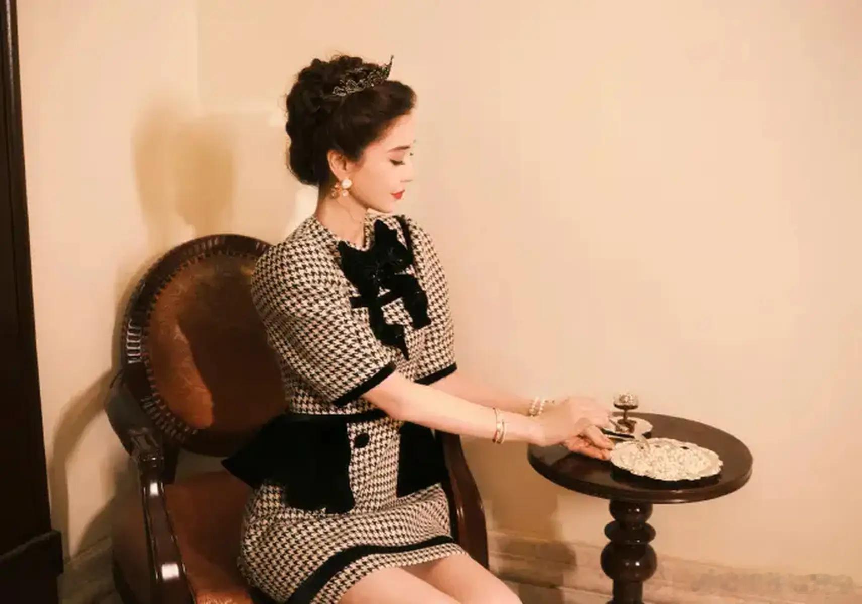 10月11日,杨颖一组美照释出,身穿小香风贵气优雅。