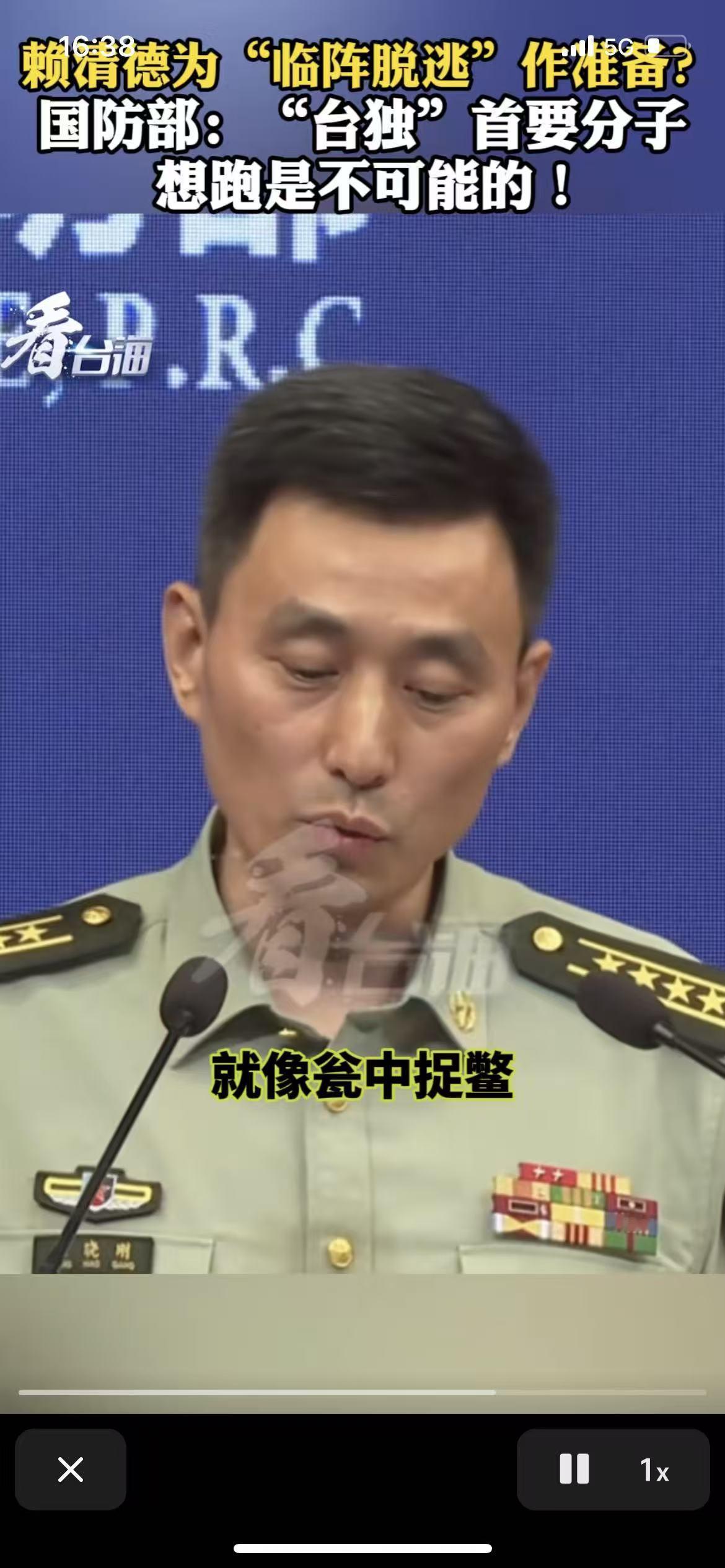 赖清德在台湾省的一次活动上演讲称,一旦两岸开战,任何投降的消息,都是假消息,而有消息称他早就准备逃跑,但“台独分子”想逃跑是不可能的,国防部强力正面回应,打破了台独分子的幻想! 如今岛内的传闻越来越多,有人说赖清德在暗中规划“战时撤退”路线。 有人爆料,他可能准备在危机时刻从台北出发,先到东部海岸,再由美军潜艇接应撤离。 也有人说,他打算乘直升机低空飞越海面逃往日本。 这些说法传开后,整个台湾舆论都炸开了锅。 有人觉得他太胆小,也有人认为这是给自己留一条命。 就在舆论沸腾时,中国大陆国防部在例行记者会上给出强硬回应,发言人张晓刚大校明确表态:“我们对待‘台独’武装就像瓮中捉鳖,‘台独’首要分子想跑,是不可能的。 ”这句“想跑是不可能的”,像一记重锤敲在舆论场上,也让所谓的“逃亡传闻”变得更加刺眼。 赖清德并没有否认这些传闻,而是用一套看似坚定的说辞回应质疑。 他在讲话中强调,如果战火真的烧到台湾,岛上流传的“投降信息”一定是假的。 这番话听上去像是在打气,但更多人读出了他的心虚。 毕竟,当一个领导人要提前解释“不会投降”,那说明他最担心的就是被认为会“投降”。 岛内媒体爆出,他近来加速采购武器、防御装备,推动所谓“保卫计划”,强化北部防线。 这场风波不过是“台独路线走向末路”的一个缩影,大陆的对台湾省的军事部署早已形成常态化封控。 从2022年佩洛西窜台之后,东部战区的演练越来越密集,海空一体化监控体系覆盖台湾周边。 卫星、雷达、无人机都在持续运作,赖清德假如真要逃走,根本无处可逃。 那句“瓮中捉鳖”,不是夸张,而是事实。连解放军发布的演训画面都显示,台湾所谓“安全出口”早被彻底封锁。 赖清德若真指望靠美军救他离开,简直是幻想。 美方这几年把军援改成军售,态度早已变了味。 所谓“盟友”关系,更多只是利益交易,根本不会有人替他承担风险。 这场“逃跑风波”其实是一场政治心理战。 赖清德阵营急着对外展示“我不怕”的形象,大陆这边则选择在关键节点释放“你逃不掉”的信号。 毕竟赖清德的言行,也让两岸关系更紧张。 他上任后不断推动台独,甚至“去中国化”,封杀统一言论,还驱逐大陆配偶,只因他们在社交平台上表达支持两岸统一的看法。 大陆的那句回应,真正指向的是一种决心。 无论“台独”怎么变换说辞、制造幻想,都逃不过统一历史大势。 赖清德嘴上喊“为台而战”,私下却被传为自己找出口,这种两面姿态注定站不稳。 所以就算赖清德那套“逃跑剧本”就算存在,也注定无法上演。 大陆军力早已不是当年,任何“突围”计划都逃不出天罗地网。 与其幻想出逃,不如面对现实,再华丽的政治表演,也掩不住一颗虚弱的心。 唯有放弃宣传台独思想,主动和大陆联络,实现两岸和平统一才是最正确的路径。 若赖清德将“台独”思想进行到底,那么未来等待他的一定是国家的审判,因为台湾回归是历史必然的趋势,他如今的罪行在一一被记录,未来等待他的一定是法律的审判和制裁。 信源:看台海