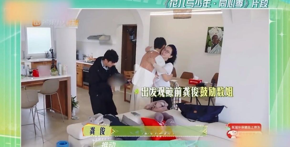 龚俊这次牺牲太大了, 陈数不说的话, 我们都不知道呀。 陈数之前只是说龚俊 会极力推动她去做一些事情, 没有想到 龚俊不光嘴上说说而已, 还加上了行动。 陈数在观鲸前十分焦虑, 一直犹豫是否参加观鲸活动, 于是陈数调皮的说, 如果龚俊给她一个大拥抱, 她就去。 结果龚俊毫不犹豫 给陈数一个温暖的拥抱。 这下陈数没有理由不去了。 哎呀, 网友看到这里, 应该已经在心里直呼, 我也想要龚俊的抱抱, 我什么都答应去挑战呀。 这样想来, 如果没有龚俊这样暖心推动, 那么娇气的陈数也许无法支撑整个旅程。 之前我们只看到龚俊对于张晚意的各种帮助, 想不到龚俊在我们看不到的地方 各种帮助姐姐们。 其实陈数是否去观鲸 对于龚俊来说没有任何意义, 但是龚俊细心察觉到陈数想去的意愿, 就暖心地推她一下吧。 不想她留下遗憾。 龚俊真的在细心的观察着身边的人, 你看, 那英那次坐滑翔伞, 是真的不想去, 龚俊没有勉强她, 尊重她的个人意愿。 是呀, 有些人是真的需要推一把, 而有些人是不需要的, 帮人也要观察入微。