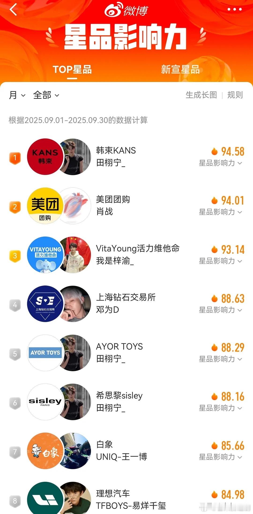 恭喜这个田栩宁连续两个月星品月榜登顶,从有商务到没下过榜一,内娱有属于氪金流派的流量
