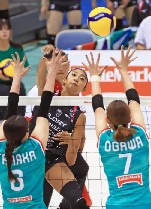 明加尔迪打主攻,宫步蓝梨打接应,这个奇妙的组合出现了!在日本女排SV联赛,第一阶段
