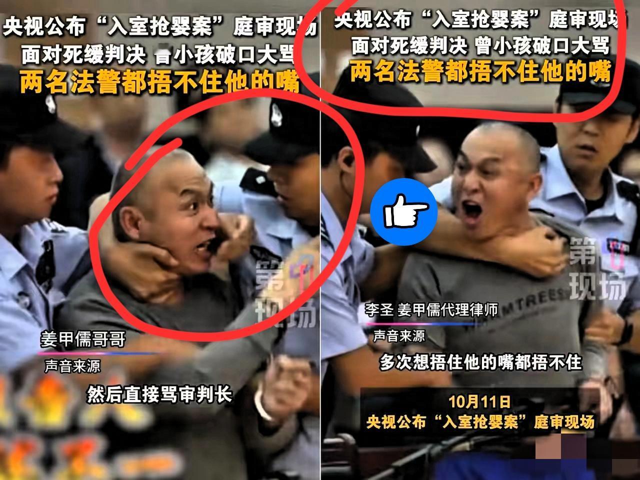 央视曝光的庭审画面太让人窝火了! 山东入室抢婴案主犯 曾某孩被判死缓后,居然 破口大骂法官和受害家属,俩法警都摁不住,这嚣张劲儿看得人牙痒痒。 18年前他翻墙进姜家,把8个月大的姜甲儒抢走卖了28600块,姜家寻子近20年,妈妈差点坠崖。结果他被捕后还狡辩没参与、没分钱,连半点悔意都没有,连律师都说少见这么嚣张的罪犯。 他哪是在骂人?分明是自己的良心早被狗吃了!拐卖孩子毁了一个家,都这时候了还不知悔改,姜家申请抗诉太能理解了。 法律不光要惩恶,更得震慑坏人,对这种没底线的家伙心软,就是往受害者心上捅刀子。 你说就这判决,真能平了大家的火气,给姜家一个交代吗?