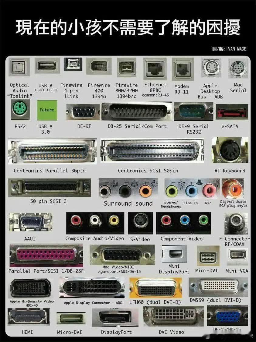 现在终于没有那么多接口的烦恼了,现在很多接口都通用了,既方便又不用去买那么多线,这么多接囗,你们认识几个?[doge]