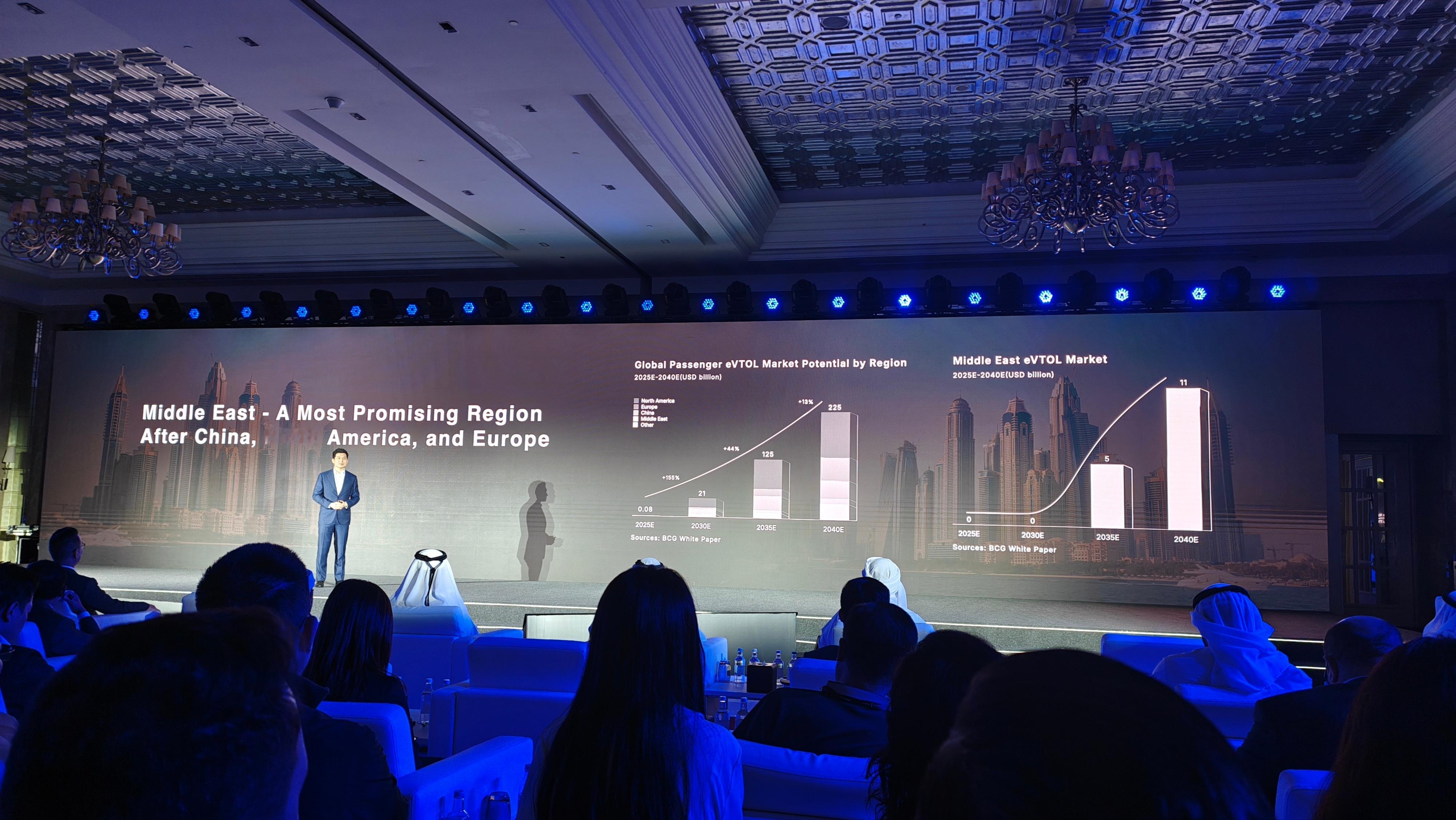 A868,ARIDGE下一步要针对经典场景的飞机,续航超过500公里,时速超过360公里每小时。这可是跨城飞行的神器。小鹏汇天的CFO杜总正在介绍低空经济发展规模和产品规划。