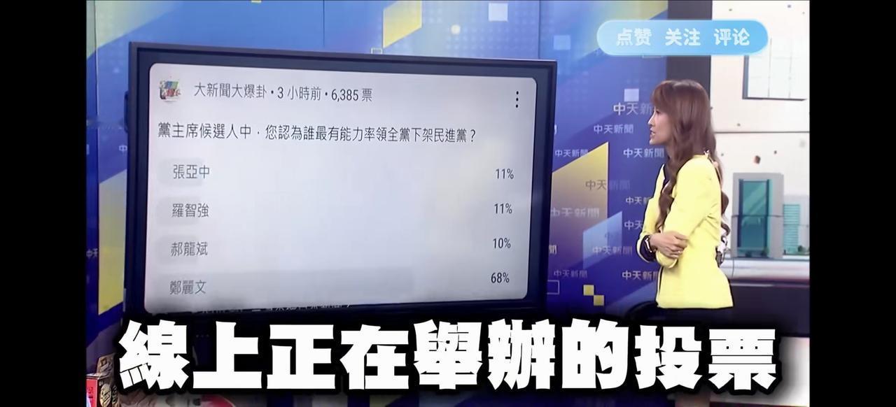 国民党主席最后一场政见会辩论结束后,中天做了民调。 民调显示有68%的人认为,郑