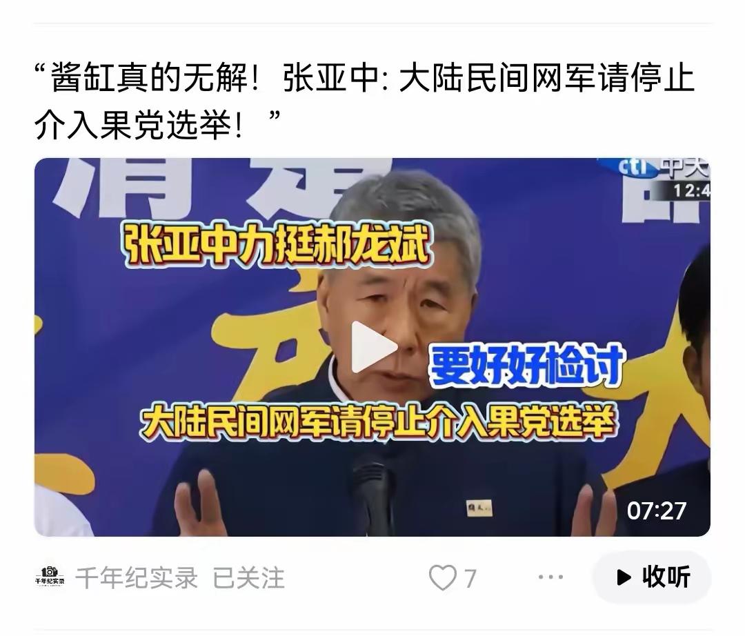 国民党这帮人完全没救了。是什么原因让他们觉得我们会在意他们的选举闹剧呢?我们难道不是当笑话来看吗? 你看我们大陆网友不是最近还做了一个王世坚没出息的短视频吗?热度比你们的选举高多了。 解放台湾只能靠我们党和人民解放军。至于你们怎么想我们不在意。 顺便说一句,赵少康还在美国要对台湾芯片业吃干抹净时,让大陆出来说句话。他的逻辑是怎么样做到的呢? 点右上角关注我,我们一起去看这个魔幻的世界