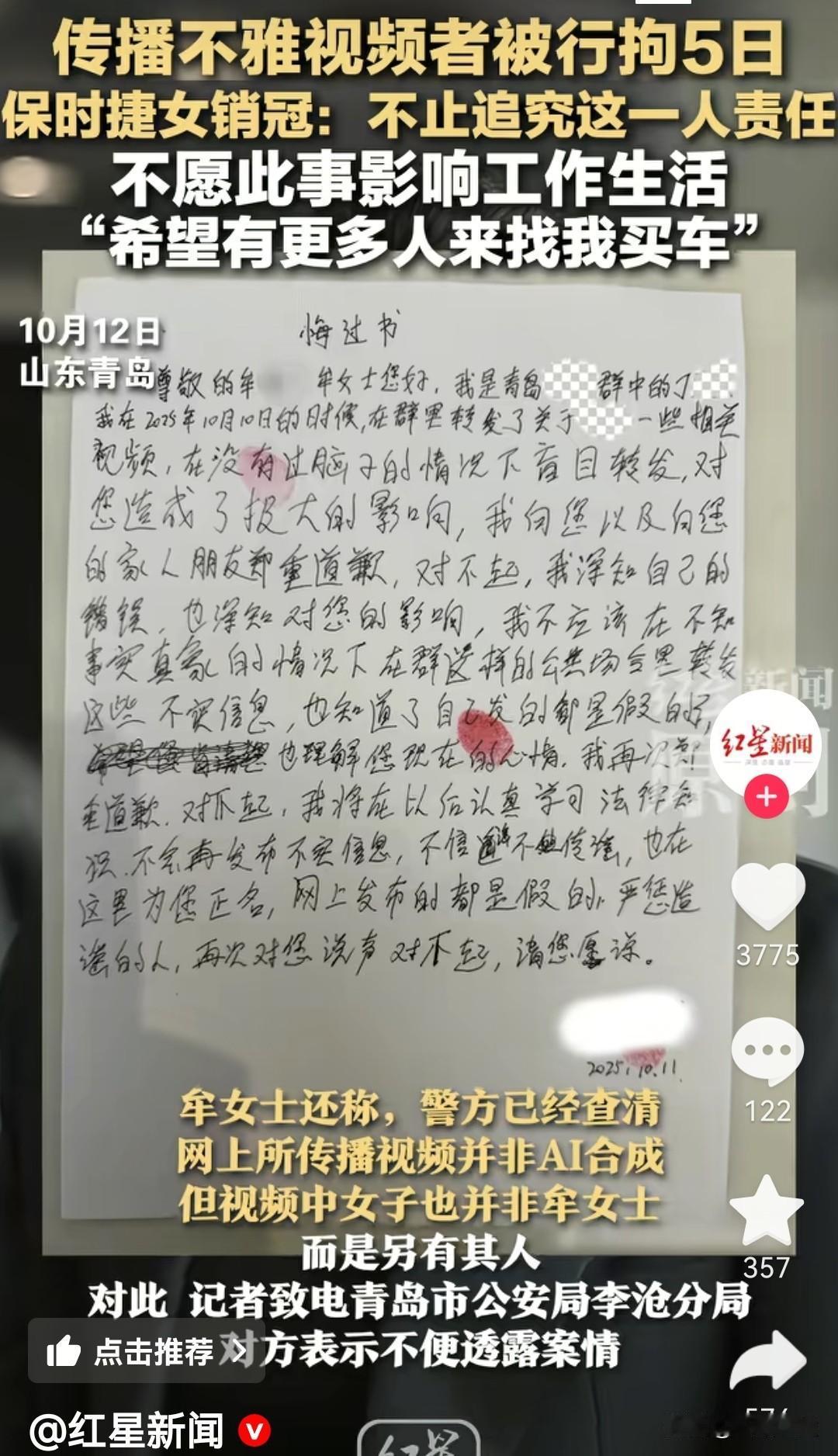 必须追责到底,一个都不能漏,现在的网络喷子太多了,自己过的不好,就见不到别人好,这就是典型的心理扭曲! 还有一看这悔过书上面的字,就知道这人文化程度不高!写的字像蚂蚁上树一样![我想静静][我想静静] 网络评论乱象 制裁网络喷子 制裁网络喷子 网络评论乱象