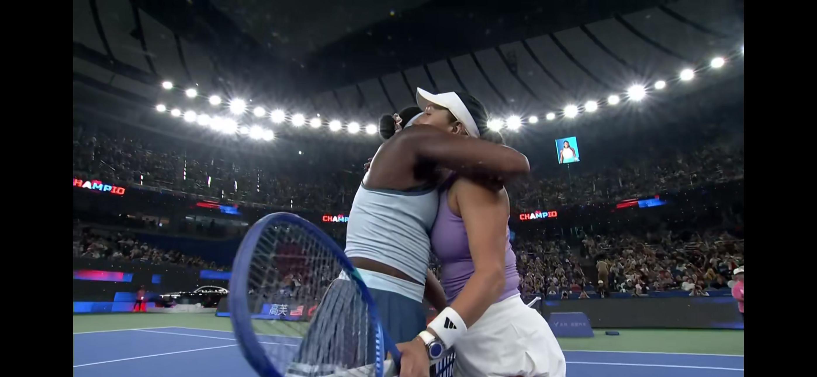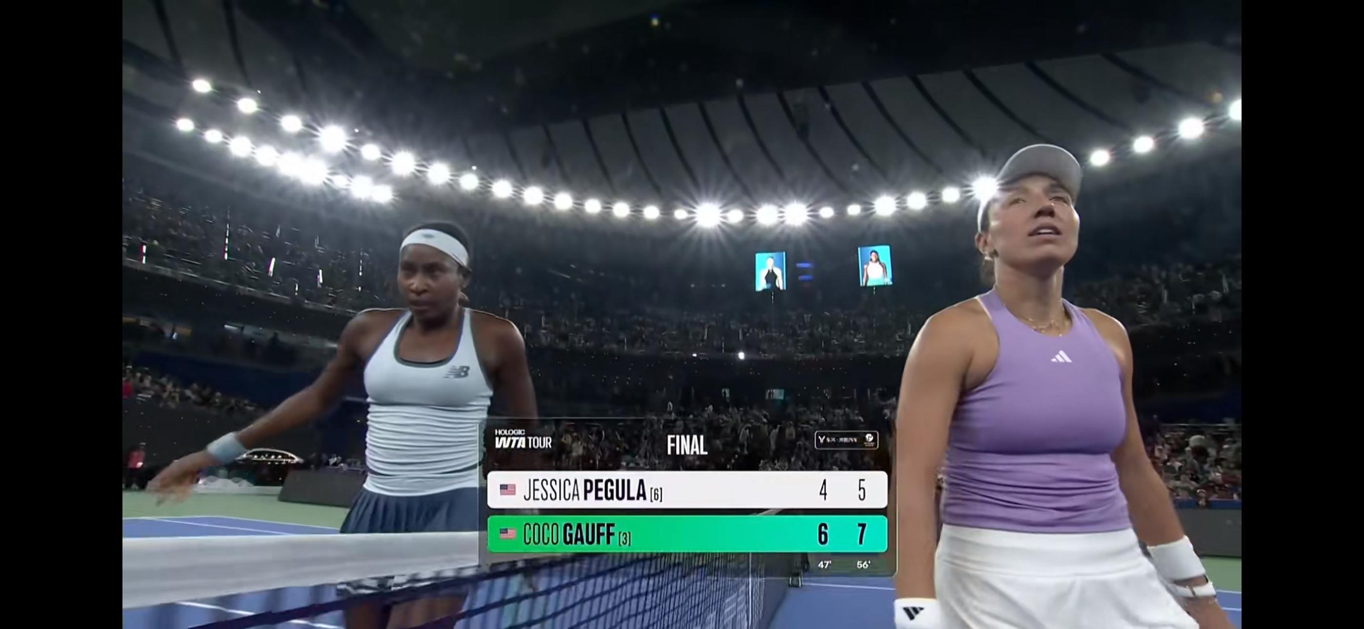 刚打开直播,就看到高芙以6-4、7-5击败佩古拉,赢得今年武汉公开赛冠军,也是生涯第三个1000赛冠军。