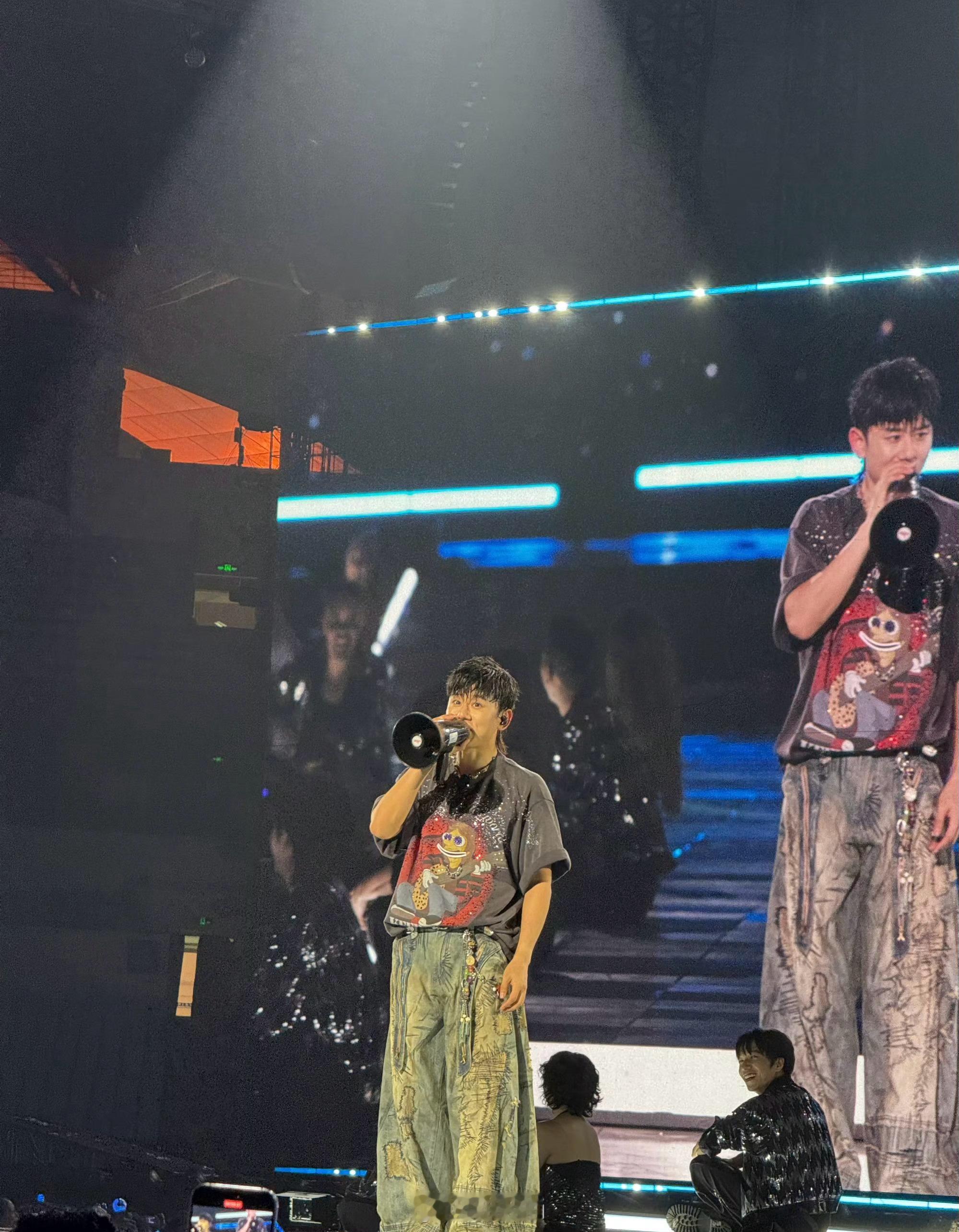 谁家演唱会拿喇叭唱歌,打碟机和麦克风同时出现问题,开始用喇叭唱逆战,甚至张杰直接当场打坐了
