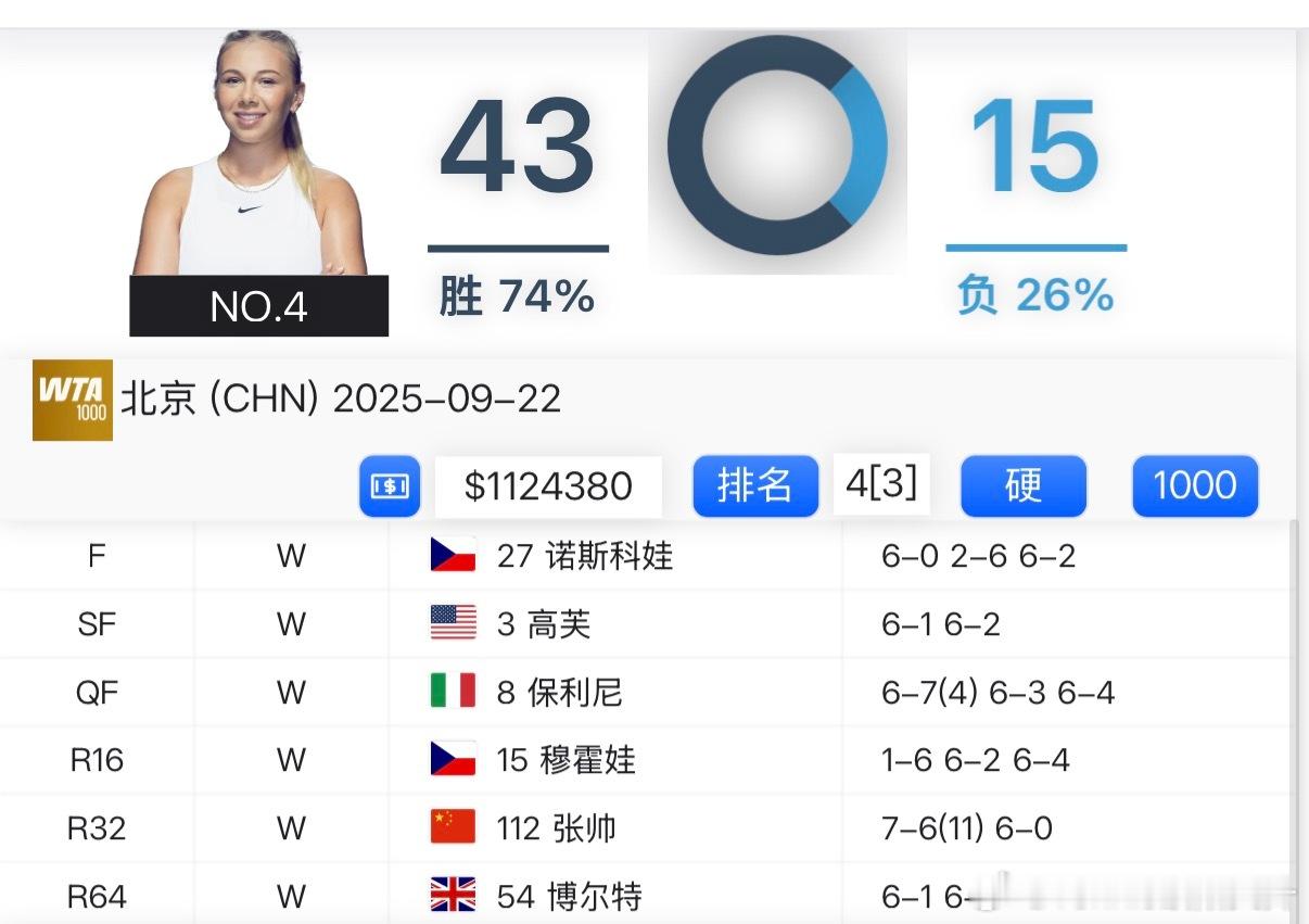 🔵WTA1000中网女单冠军