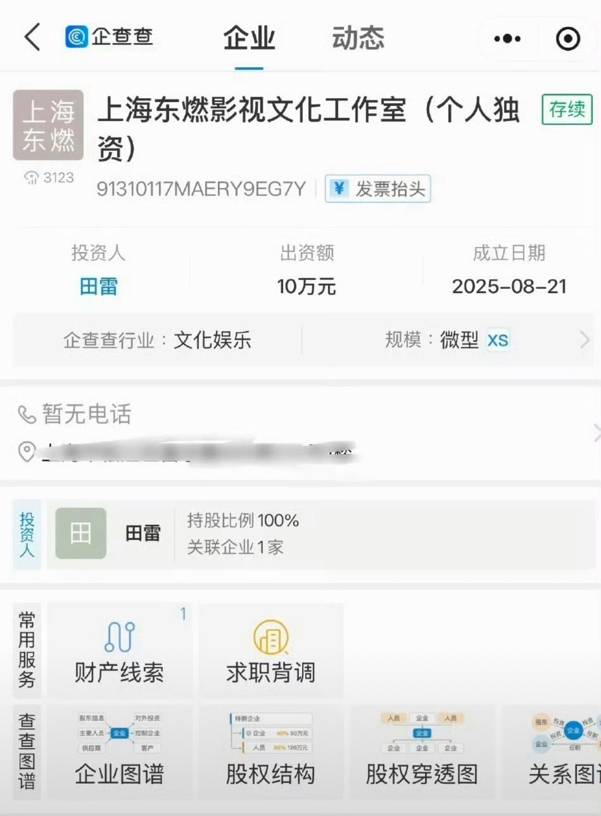 梓渝和田栩宁疑似都成立了个人独资工作室