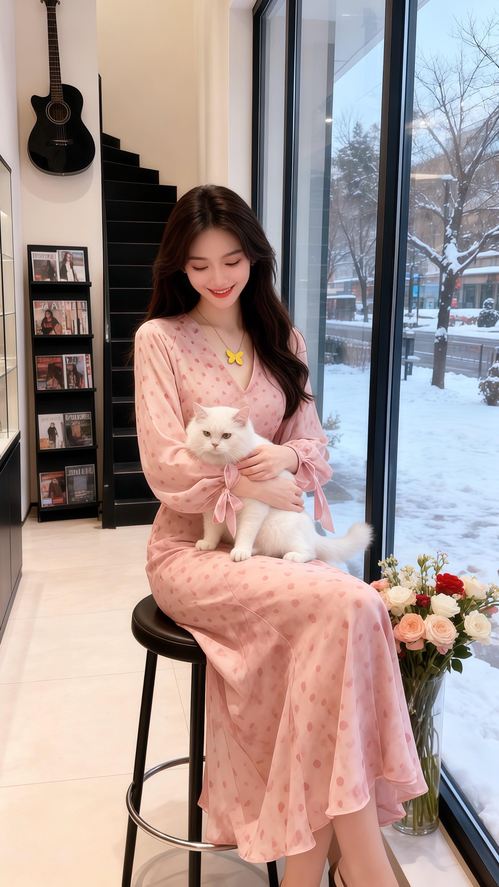 抱着白猫“奶糖”在落地窗前小憩时,她总恍惚看见多年前的自己,穿着相似的裙子在画室里挥毫。直到那天,她为这条裙子画设计稿,笔锋落下的瞬间,记忆里那个穿波点裙的女孩与眼前的裙装重叠——那是她为暗恋的学长,偷偷画了无数次的模样。