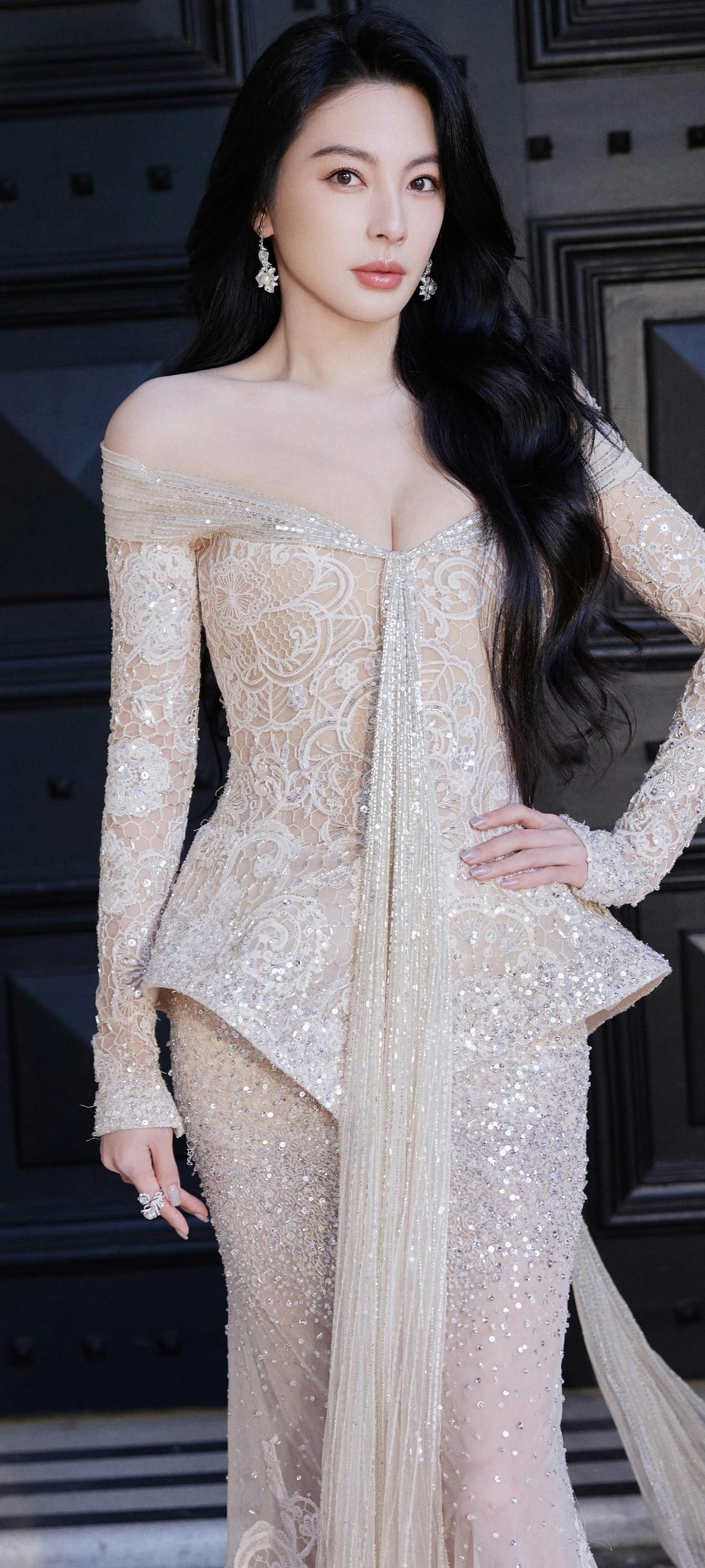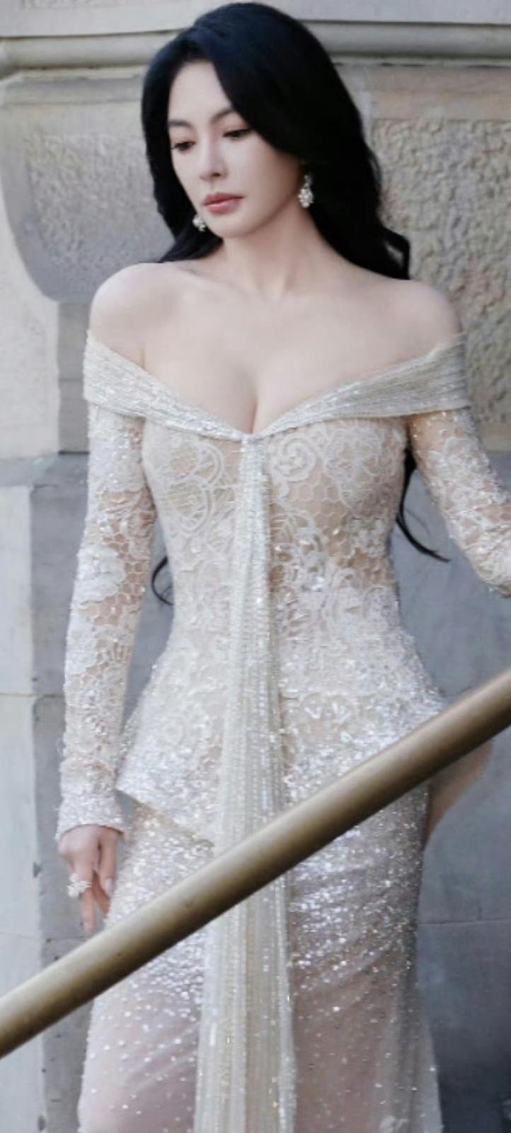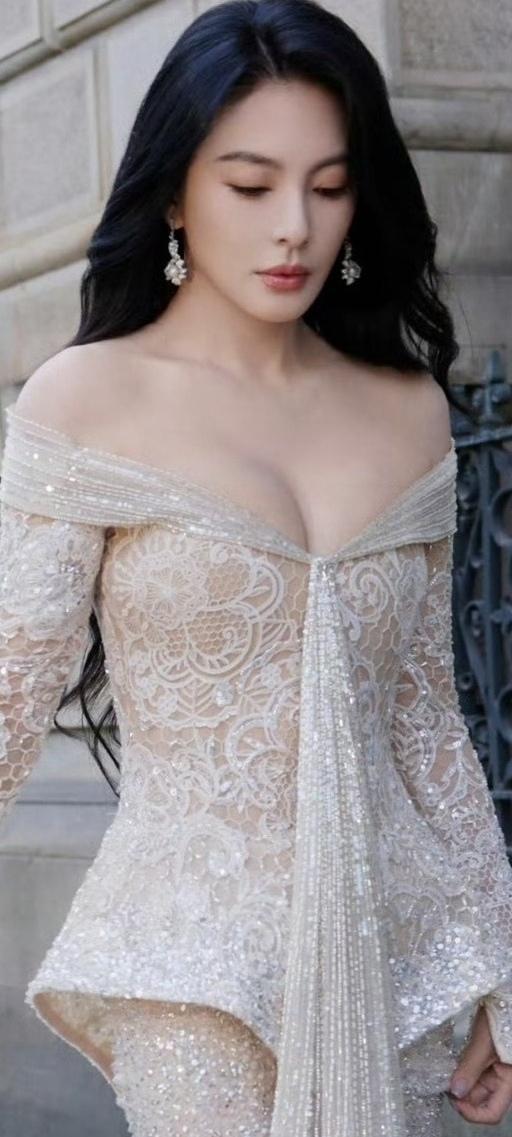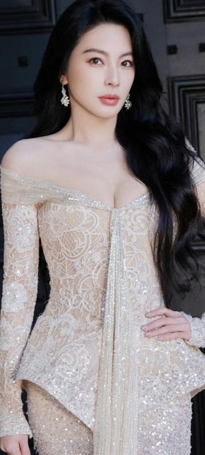 张雨绮,梦幻蕾丝长裙,优雅气质满满👗✨