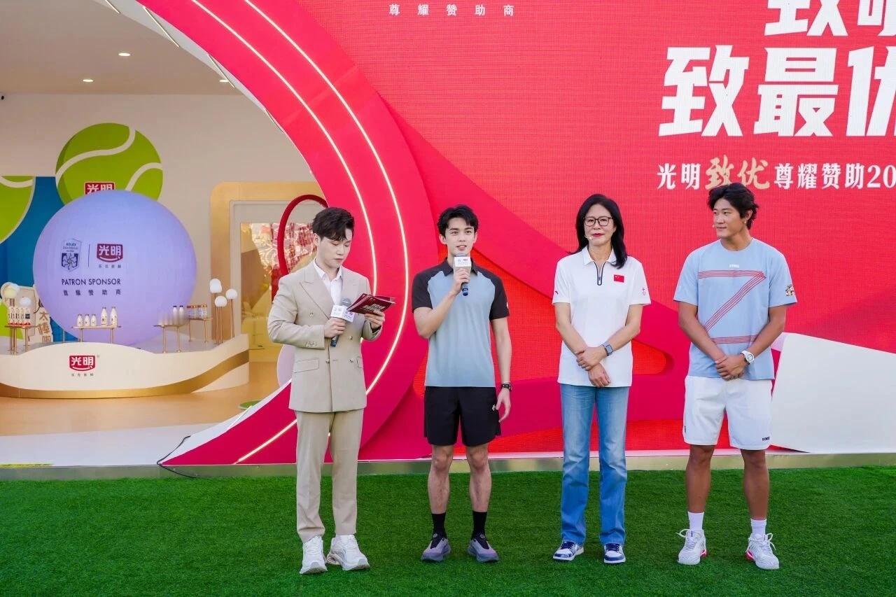 郎导光临2025上海劳力士大师赛,与张之臻、吴磊一起参加光明乳业的活动!中国女排