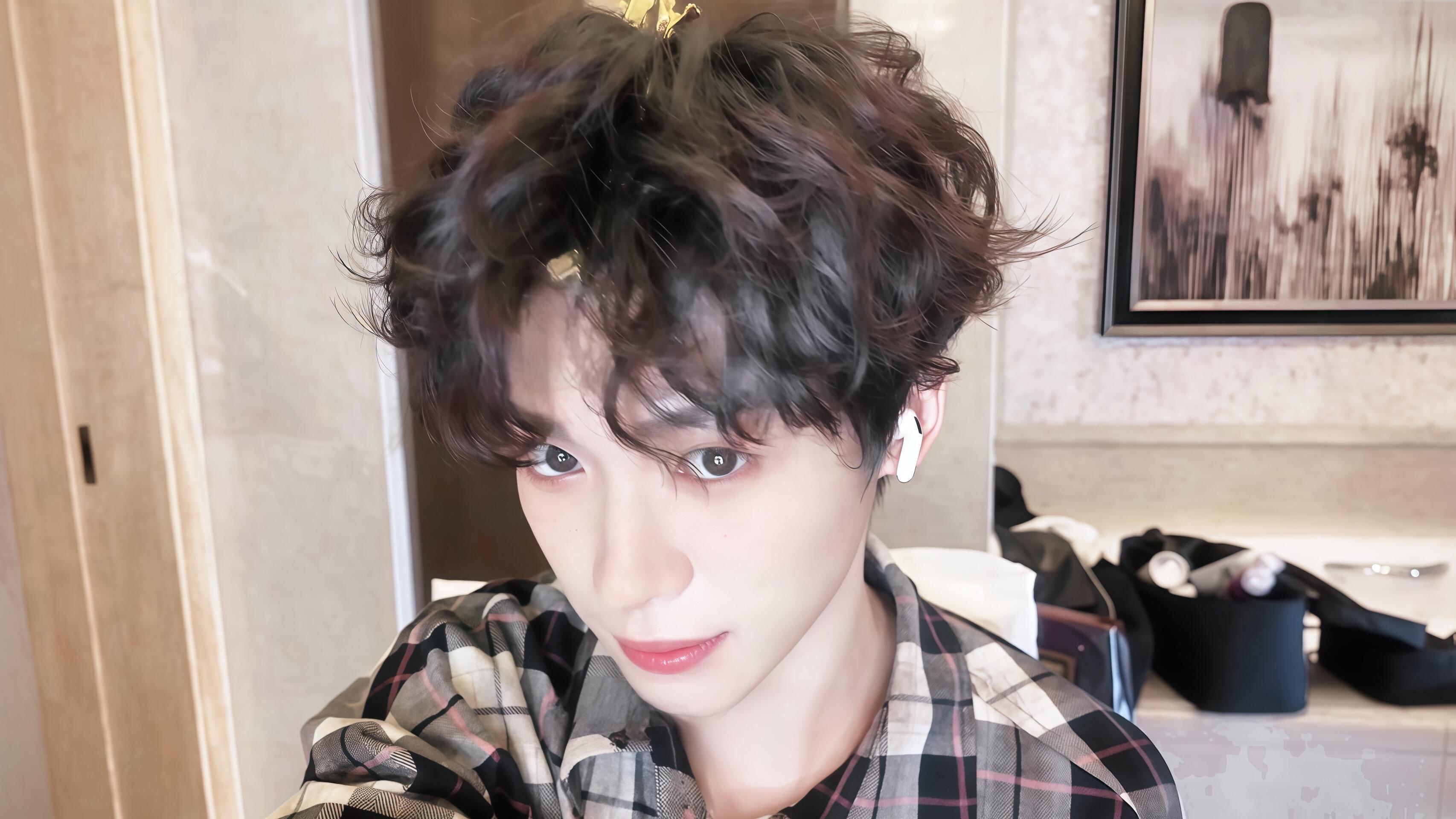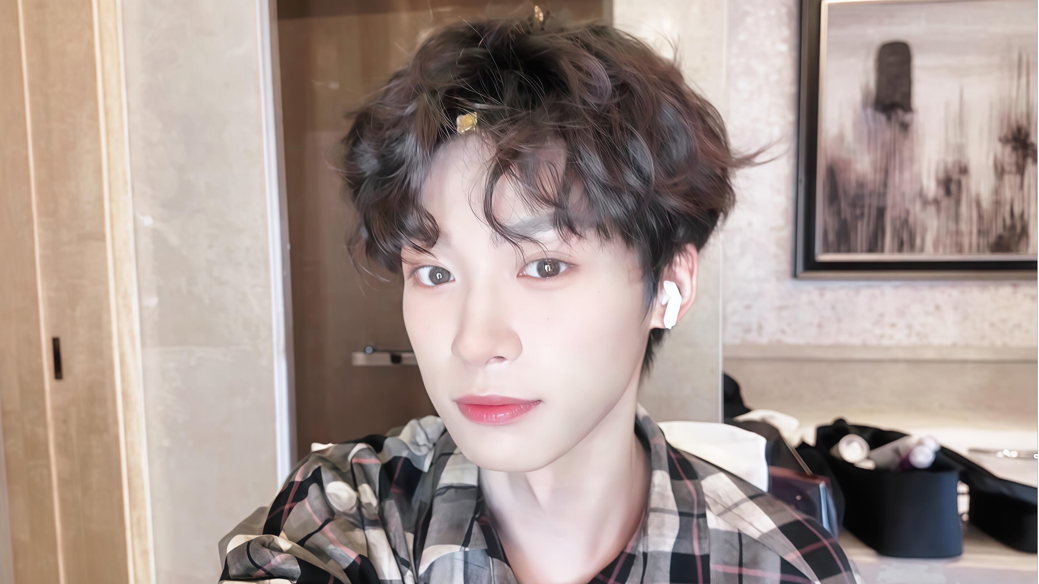 侯明昊接受采访时,坐在椅子上岔开双腿,聊着聊着谁料裆部凸起明显,工作人员好心递给