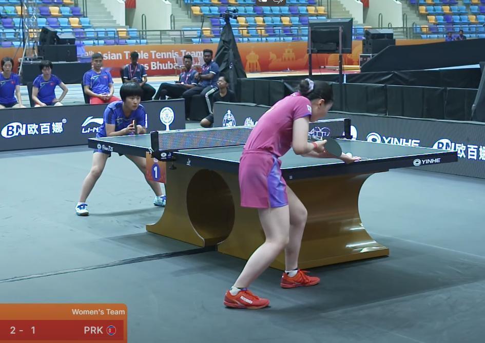 金琴英3:2拿下张本美和,为朝鲜队贡献两分。 第一局 金琴英11:8赢了 有三个擦网球, 金琴英都接住了。 太牛了, 与她站位靠前有很大关系。 第二局 金琴英一直落后, 最后11:9逆转拿下 第三局 张本美和11:8扳回一局 第四局 张本美和11:4拿下 第五局 金琴英6:0开局 11:4拿下 虽然金琴英为朝鲜队拿下两分, 但朝鲜不一定会赢