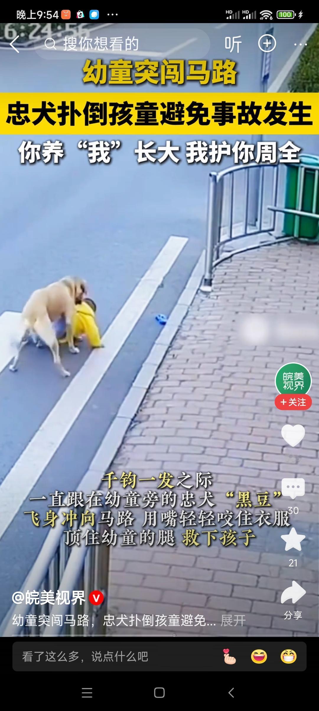 《犬护童吟》 稚子突奔马路前,车鸣十米险相牵。 黑豆飞扑衔衣救,忠犬丹心胜铁肩。