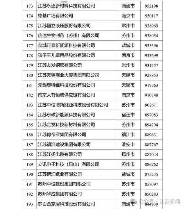 10月12日,2025江苏民企百强榜出炉。苏州以27家上榜企业数量拔得头筹,无锡25家紧随其后。南通11家、常州10家、南京8家等也各有表现。 这次榜单亮点颇多。2025江苏民营企业200强入围门槛达79.13亿元,较上年增加1.89亿元。营业收入总额7.84万亿元,平均营业额392.3亿元,增幅3.24%。千亿级企业增至11家,企业规模稳步扩大。而且民企研发投入和人员数量也都增加,科研创新能力变强,更多企业朝着新兴产业布局,未来发展值得期待。