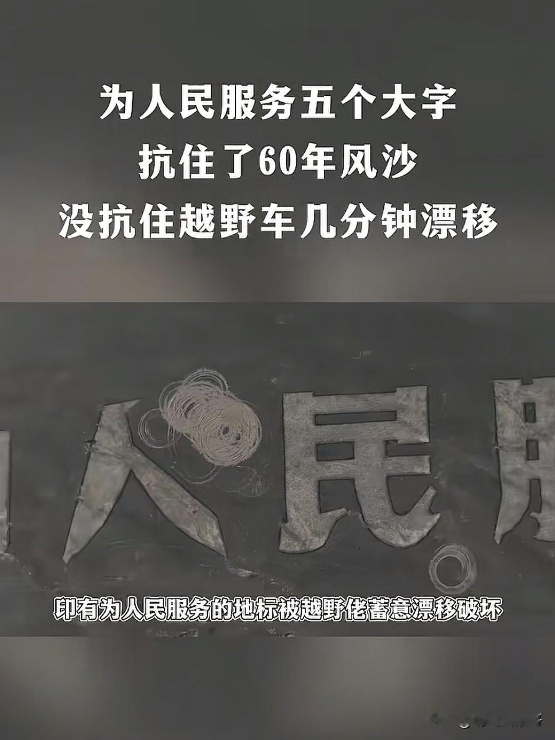 几个二货吃饱了没事干,跑去新疆戈壁滩把前人留下的“为人民服务”给破坏了。这几个货