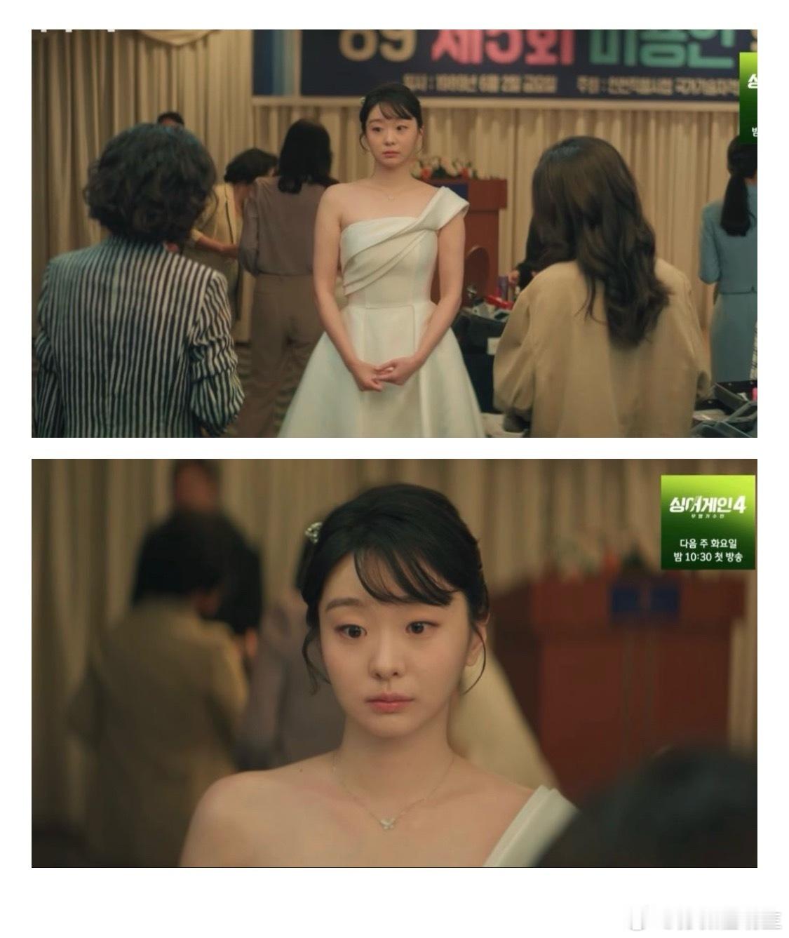 这里男演员发型首先就太过了,其中申艺恩的发型妆造从始至终完全是最近的打扮,金多美至少还有个蓬松短发。