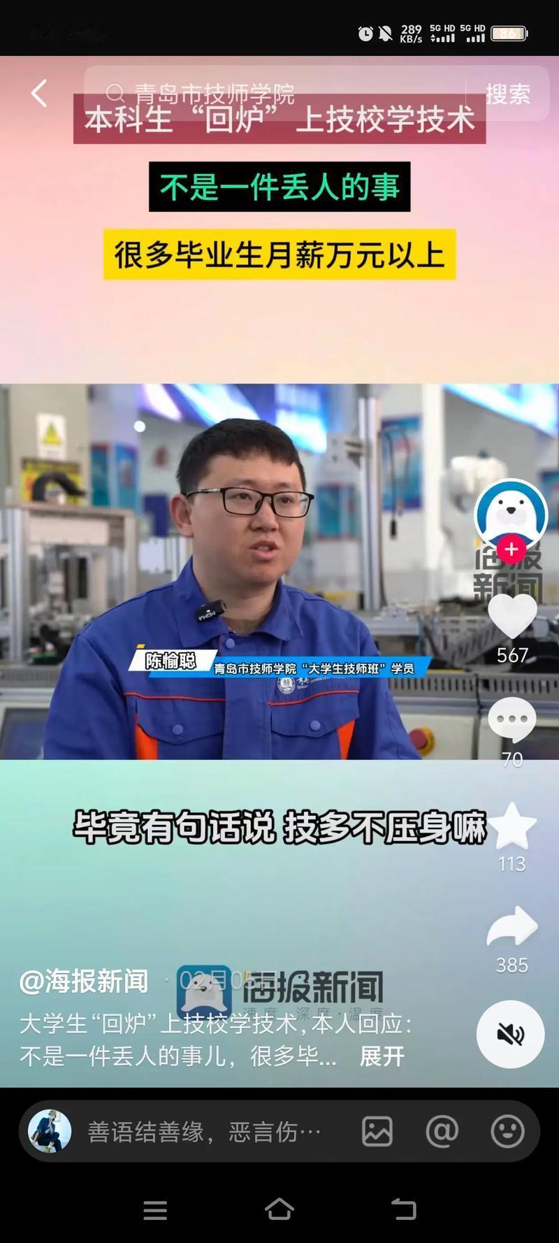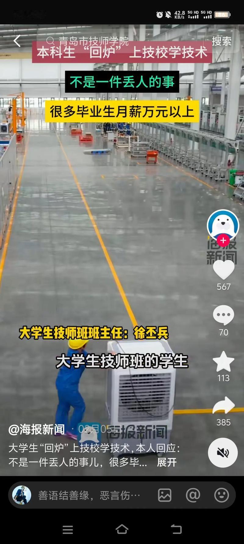 2025年秋季开学之际,众多本科生纷纷踏入技校的大门。乍一看,这仿佛是学历“降级”之举,实则是他们为弥补自身技能短板而做出的选择。许多本科生在求职过程中发现,自己虽拥有扎实的理论知识,实操能力却不尽如人意。以计算机专业为例,那些只懂代码的本科生,远不及会修机床的技工受欢迎。 当前,企业迫切需要“既会动脑又能动手”的“紫领”人才,而技校正好能够填补这一人才缺口。本科生有学历基础,学习技术时通常更快更精。青岛市技师学院、徐州工程机械技师学院、鲁北技师学院等院校,都迎来了不少前来“回炉”深造的本科生。鲁北技师学院首届预备技师班的学生,更是被世界500强企业魏桥集团提前录用。与其抱着文凭在激烈的竞争中苦苦挣扎,不如学一门手艺,这是洞察就业市场后的明智抉择。 技校职校生 高中生上技校 中专技校生 职业技校学校 技校专业 初中毕业生技校