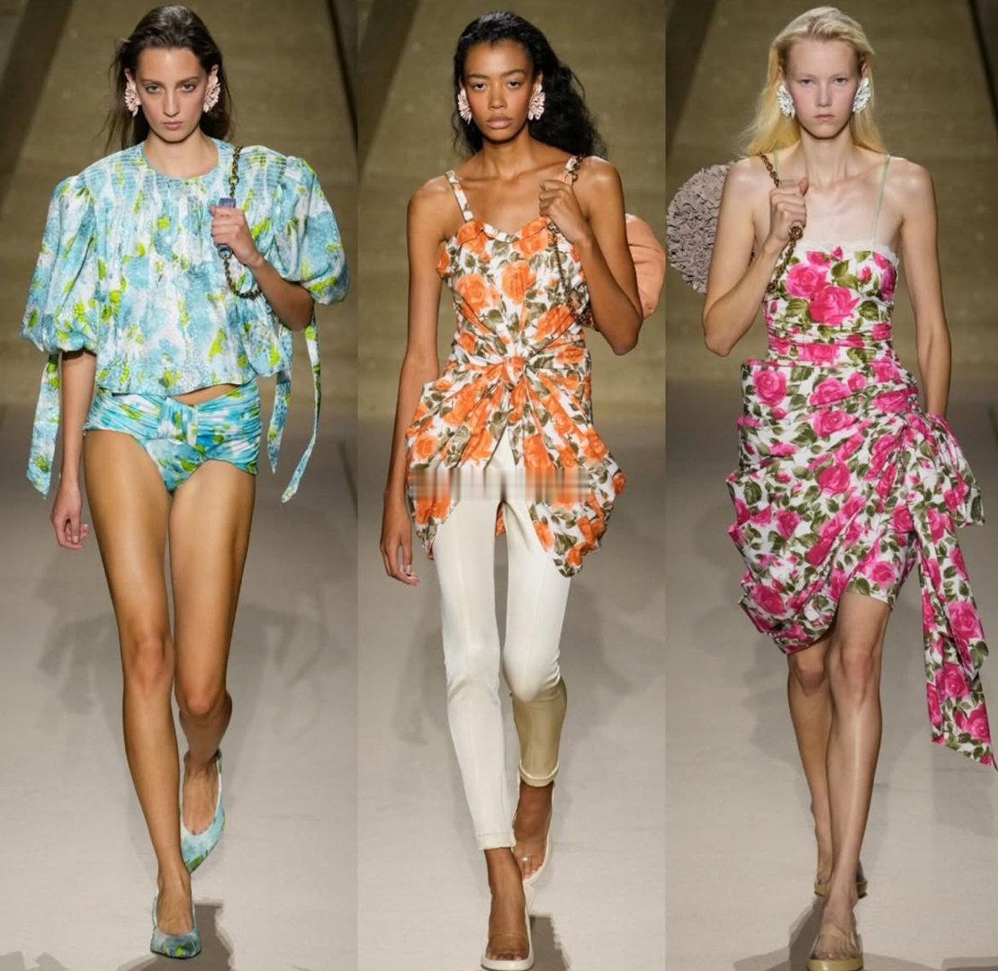 整个系列洋溢着一种乐观向上的能量。开场是鲜艳生动的花卉图案与五十年代复古泳衣,其廓形隐约呼应着千禧年初Phoebe Philo笔下的Chloé,并进行了完美的当代重塑。随后,色调转向更沉静的粉彩与中性色,这些柔和的色彩更好地衬托了八十年代的宽大轮廓,同时收敛了张扬感,显得更为现代。