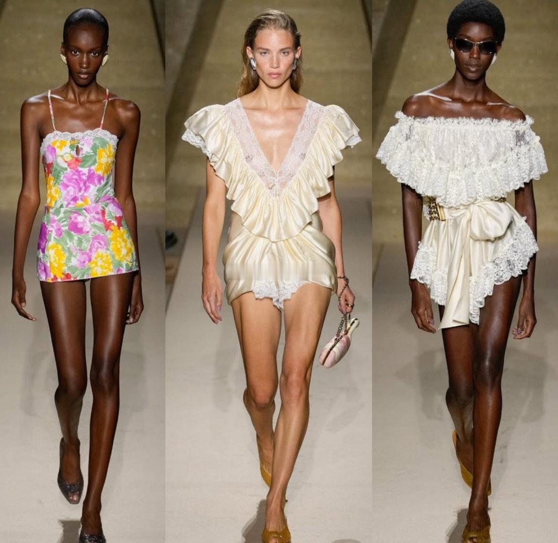 熟悉的品牌风格仍在,尤其是Karl Lagerfeld在70年代末80年代初的黄金时期,但Kamali这次处理得更为大胆洒脱,让整个系列既熟悉又无比新鲜,初期的浪漫波西米亚风情,在此被八十年代高级定制的华丽与体积感所取代,然而,Kamali巧妙地保留了Chloé骨子里的轻松与玩味,剔除了那个时代常有的浮夸与厚重。