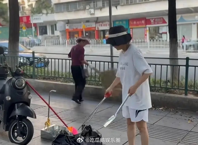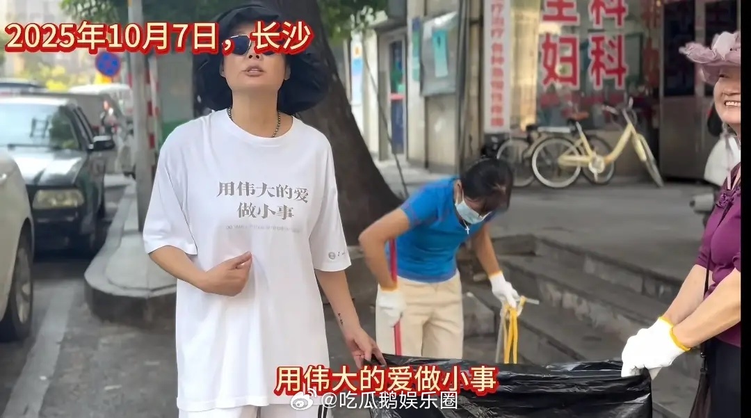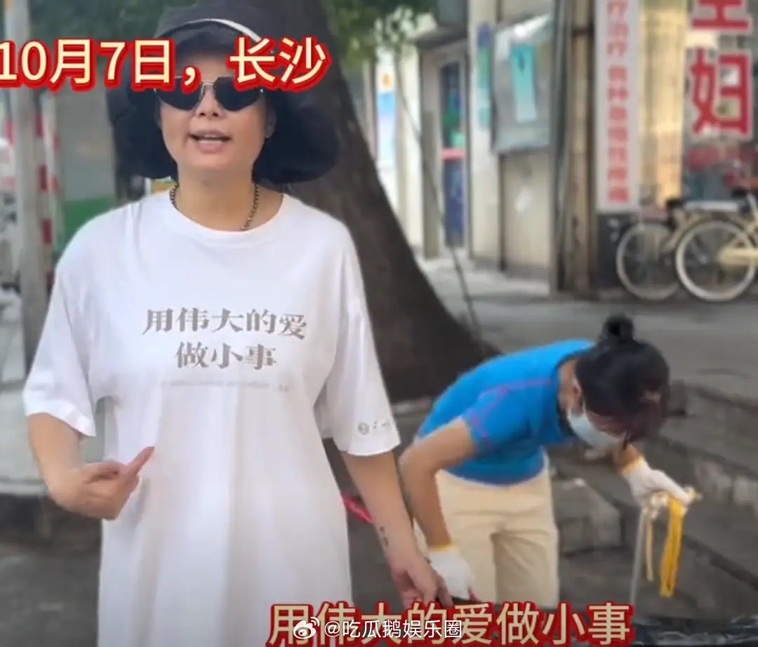 53岁袁立长沙扫大街,顶着烈日一干就是2个小时,累到低血糖!