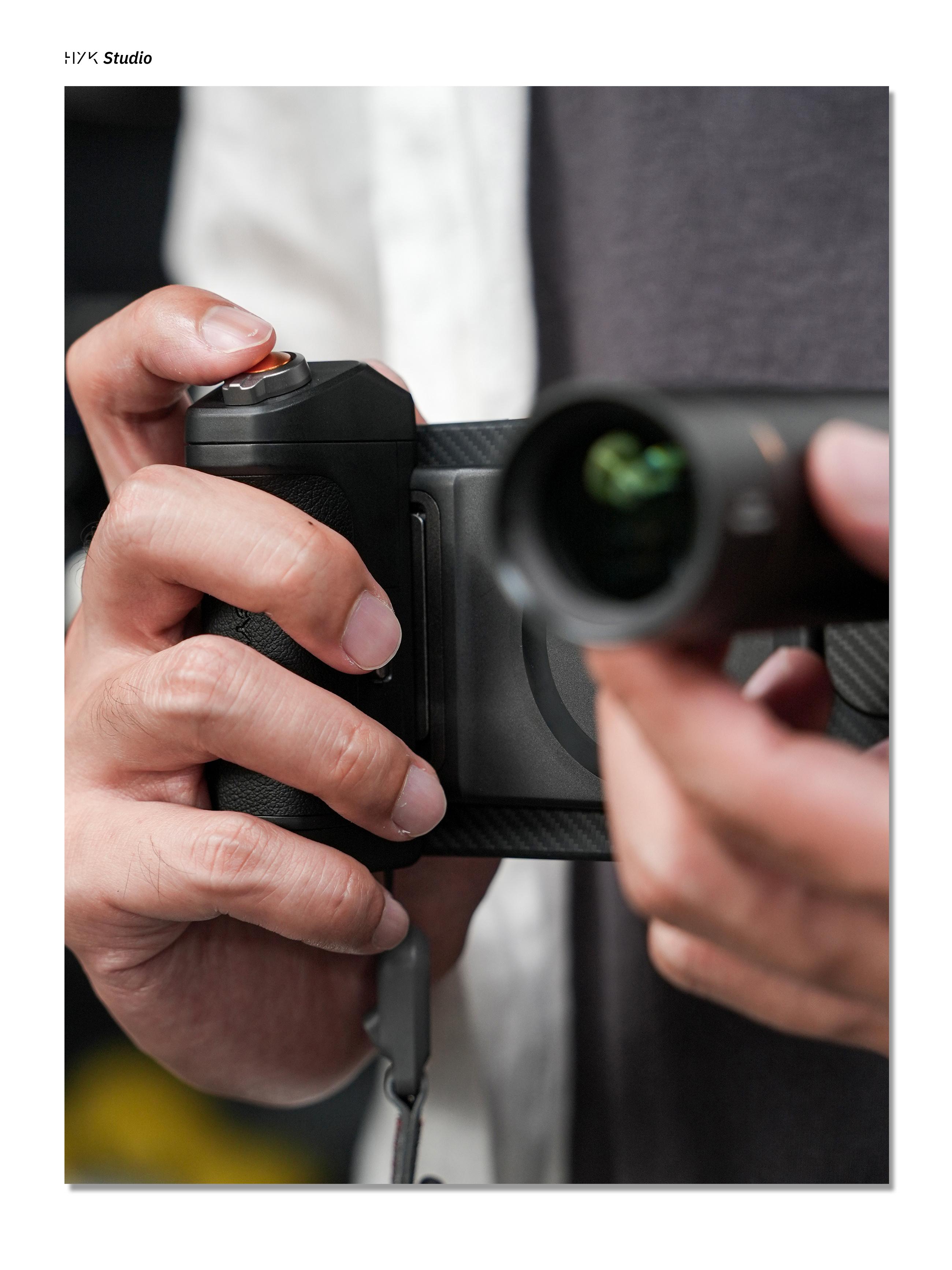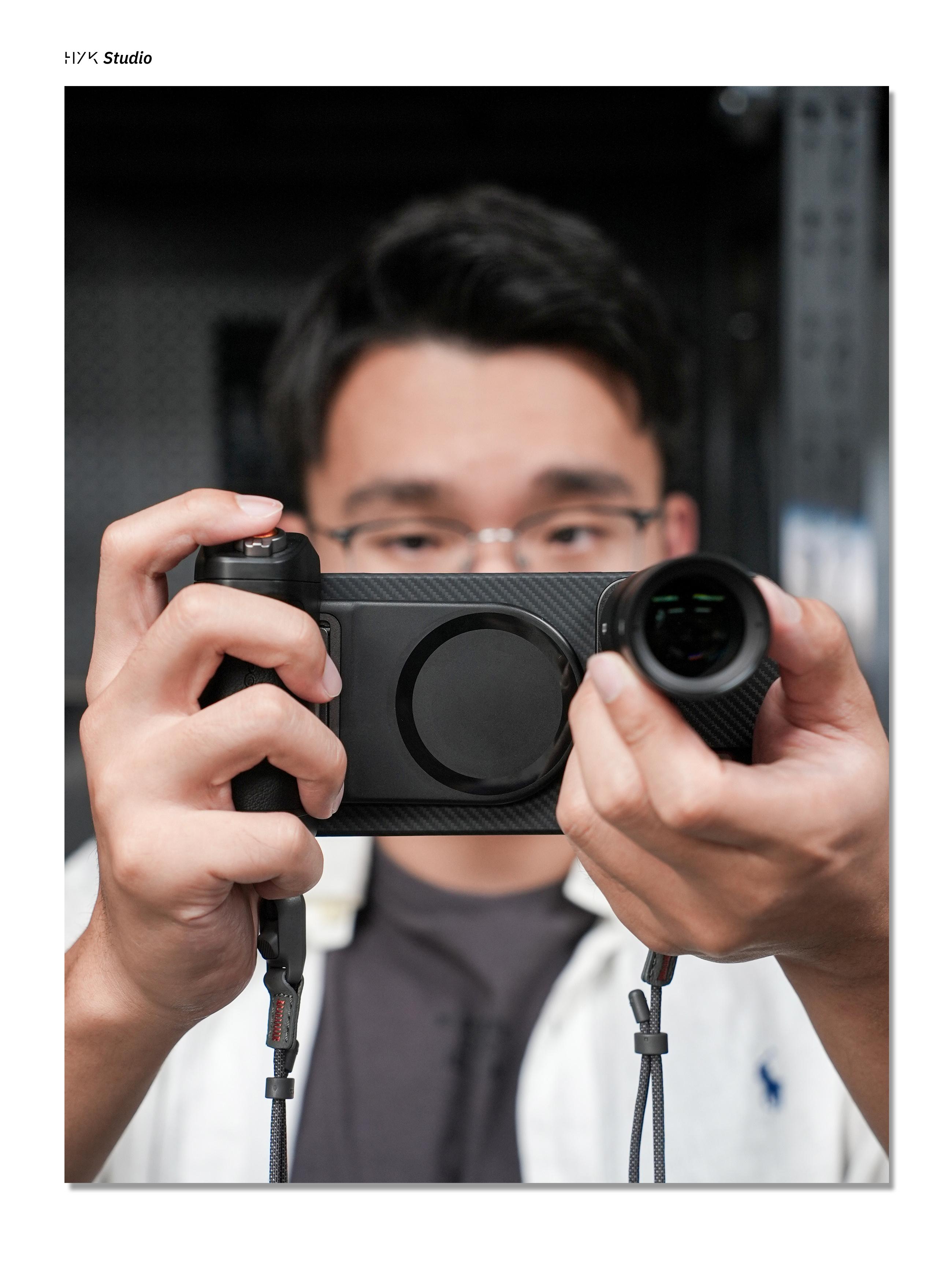套装里面包含磁吸摄影手柄、增距镜、磁吸保护壳和一个手机肩带。皮质的手柄,搭配上一颗橘色快门按键,装上后手机瞬间变身成便携相机,复古又带点专业感。不用的时候,挂在脖子上或者拆下来放在包里也很方便。平时喜欢扫街的朋友不妨看看这个摄影搭子~