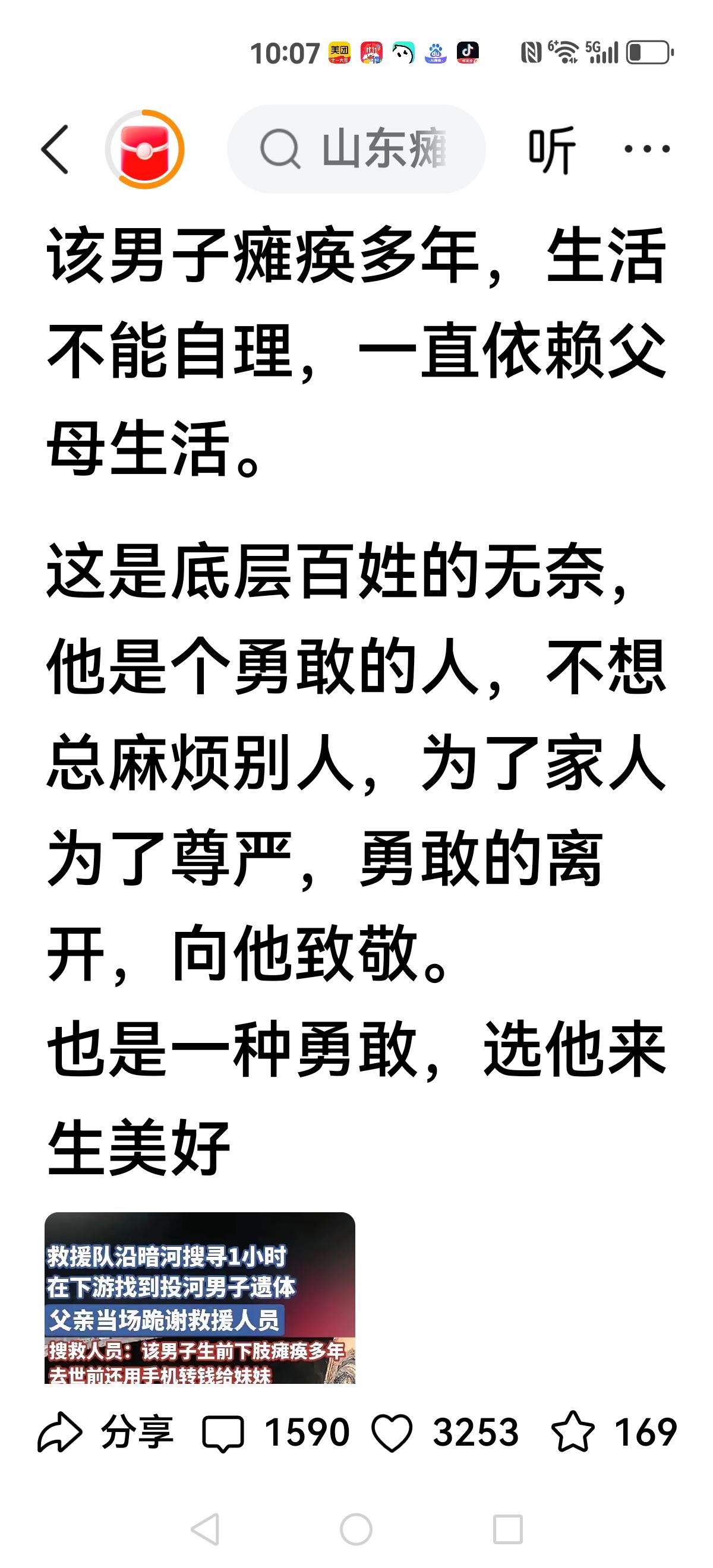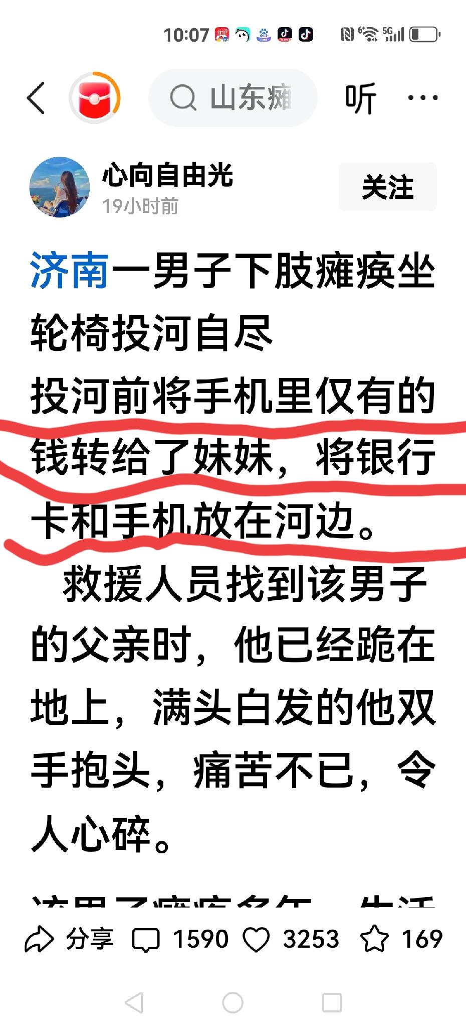 【到底要不要呼叫张维为?】 他走了 把最后的钱转给妹妹 银行卡放在河边 他和他的轮椅一起走了 是多年来父亲照顾 十多年来生活不如意 也许还有很多的无奈 那么他到底能不能坚持活下去 社会该如何帮助他? 这是我们真正思考问题 有人说这和张维为有毛关系,是个例。 难道就不能以点带面去拯救这些个例吗?